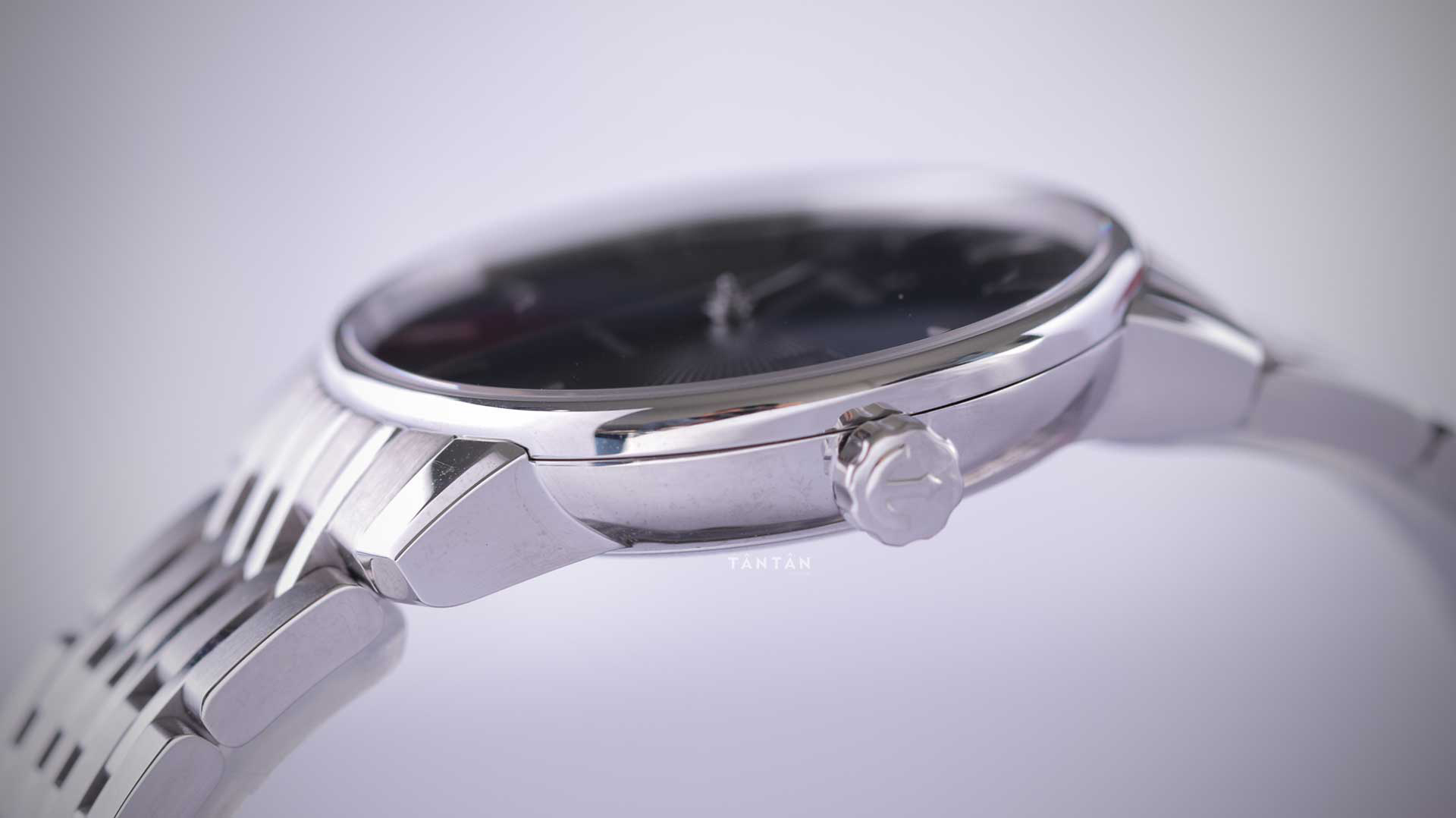 Niềng bezel được làm mỏng để tạo độ thoáng cho mặt số cũng như được bo tròn mềm mại tạo nên vẻ lịch lãm và sang trọng cho một chiếc Dress Watch đầy ấn tượng. Cạnh bên là núm chỉnh được làm to và cắt gọt khéo léo để làm ra những đường gợn uyển chuyển đẹp mắt cùng logo được khắc nổi trên mặt núm đầy tinh tế. Với đường kính vỏ 38mm, đồng hồ sẽ phù hợp với cổ tay từ 15.5cm cùng độ chống nước 5ATM hỗ trợ đi mưa, rửa tay hoặc đi bơi nhẹ.
