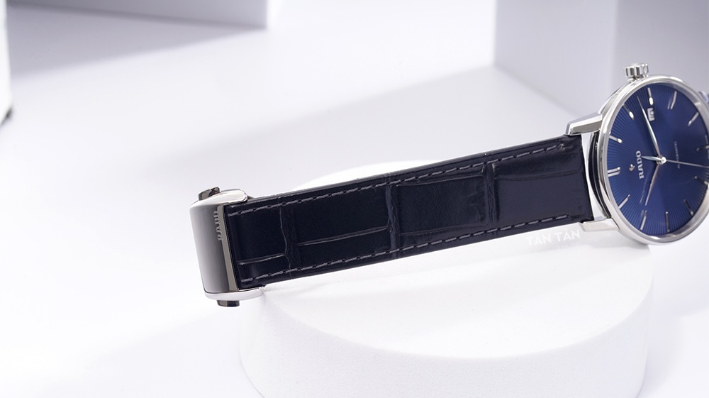 Kết hợp cùng theo đó là khóa cài được cách điệu rất sáng tạo để phù hợp với một mẫu đồng hồ dây da cao cấp với điểm mạnh là sự chắc chắn giúp bộ dây đeo ôm trọn lấy cổ tay và thuận tiện trong thao tác tháo ra - đeo vào. Thêm vào đó, mặt khóa cũng được cắt gọt với những đường cong mềm mại và khắc chìm tên thương hiệu Rado đầy tinh tế.