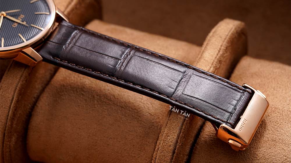Dây đeo đồng hồ Rado Coupole Classic R22877165 sử dụng chất liệu da 2 lớp cao cấp. Lớp ngoài được dập vân cá sấu màu nâu đầy sang trọng, lịch lãm cùng lớp trong sáng màu có bề mặt mềm mại tạo cảm giác thoải mái, dễ chịu trên tay các chàng. Dọc theo hai bên viền dây là các đường chỉ may chắc chắn, thẳng tắp vô cùng tinh tế mang đến độ bền chắc và sử dụng dài lâu. Kết hợp cùng với dây đeo đẹp mắt là khóa gấp tiện lợi giúp cân bằng và giữ cho đồng hồ ôm trọn cổ tay người đeo. Đây là loại khóa đặc biệt thiết kế trên những mẫu đồng hồ dây da cao cấp, giúp chống đứt gãy hoặc bị hư dây khi đeo vào - tháo ra.