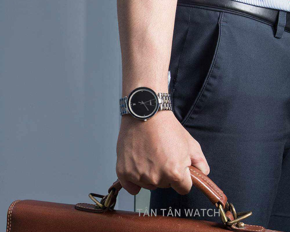 ✓ Mặt số màu đen được hoàn thiện sắc sảo với vòng tròn chấm thép tựa đá quý bắt mắt.