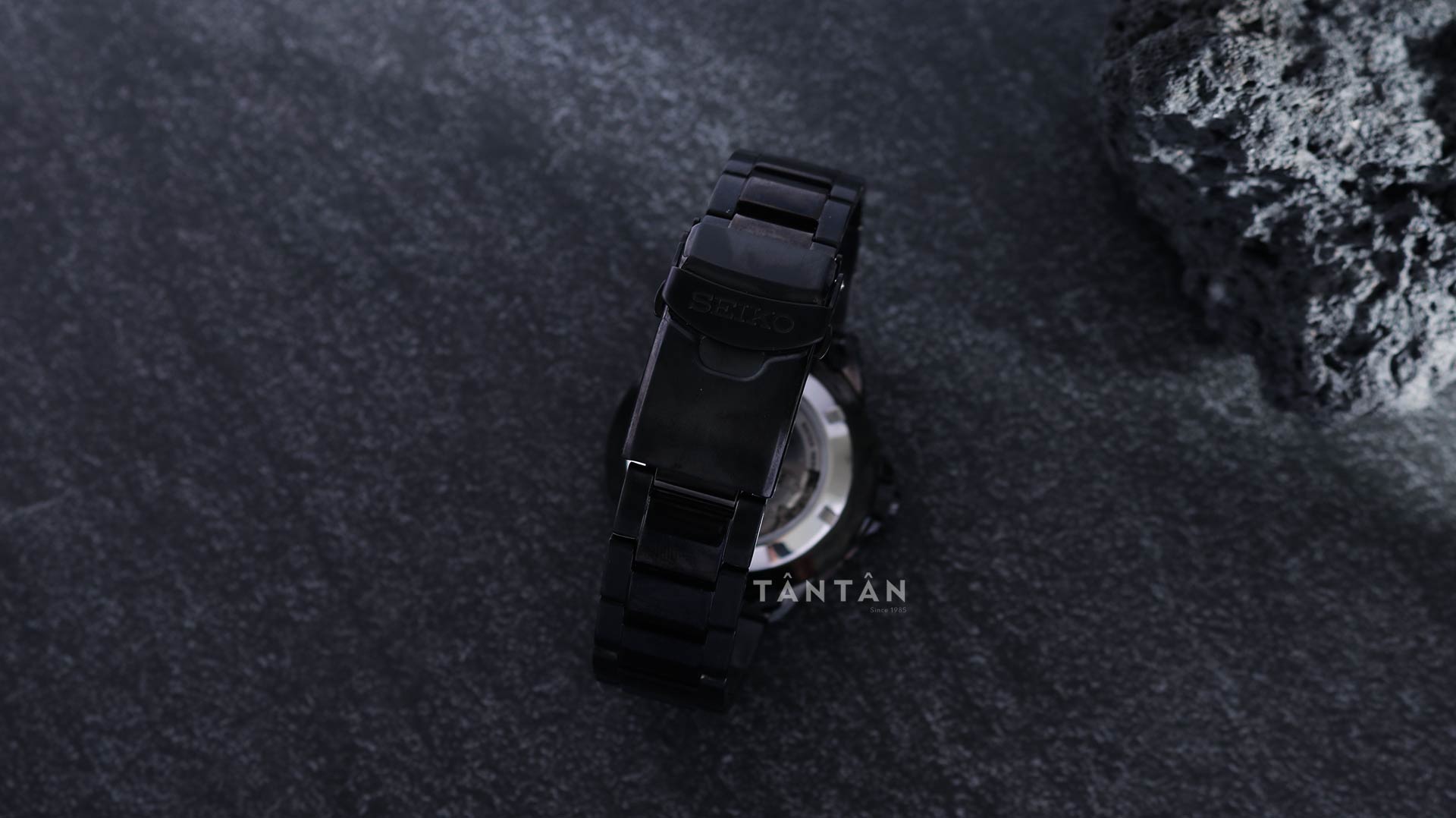 Thiết kế phong cách thể thao, bộ vỏ được làm lớn hơn với đường kính 44mm dày 13mm phù hợp với cổ tay 17cm trở lên. Hoàn thiện chất liệu thép không gỉ chắc chắn, mạ thẩm thấu ion đen toàn bộ và đánh xước phay toàn bộ bề mặt, với khóa gập kép chắc chắn trên cổ tay.