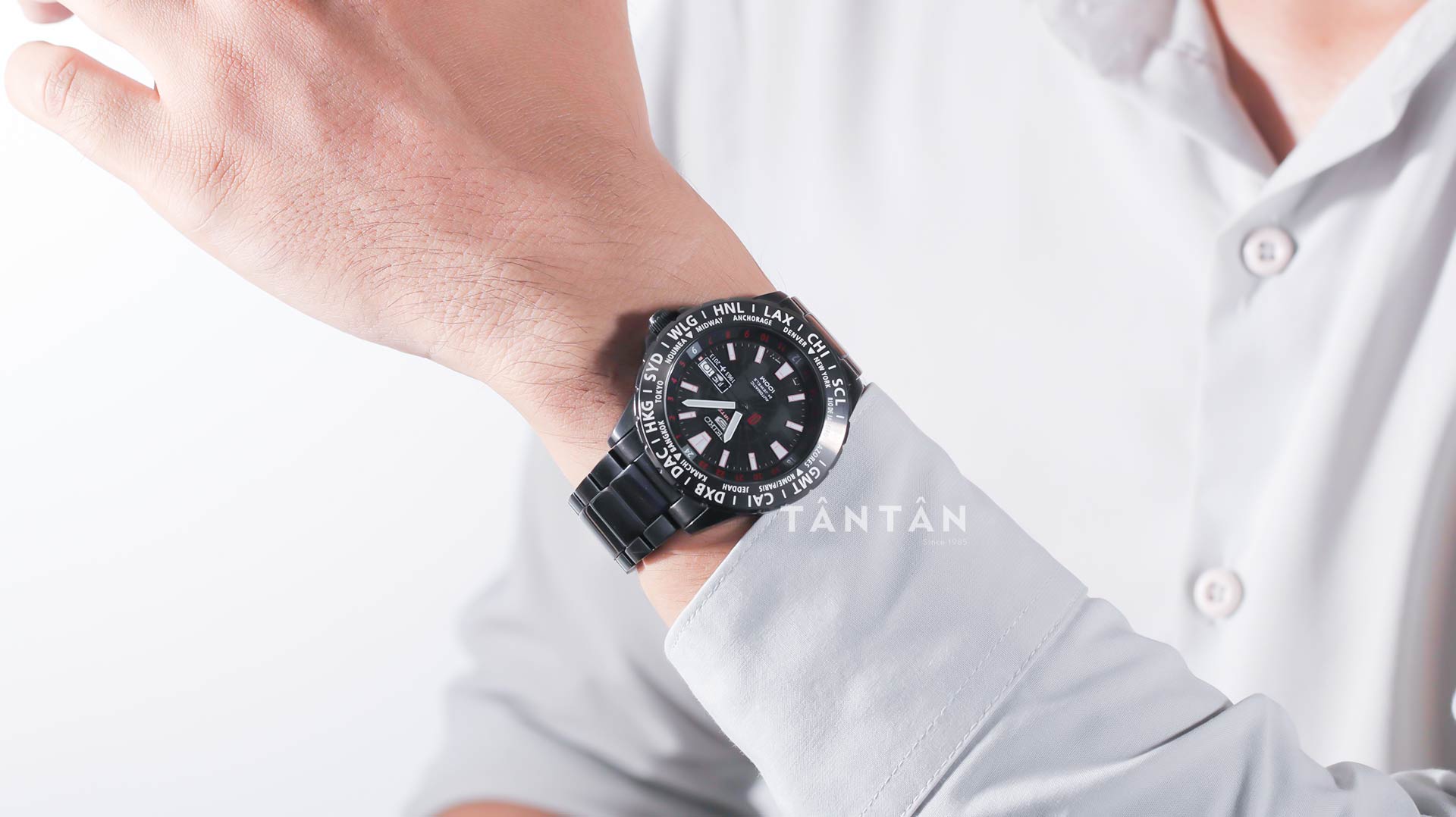 Mặt số hình bản đồ trang bị chức năng Worlt-time GMT 24 thành phố lớn cùng lịch ngày, lịch thứ, dạ quang tiện dụng