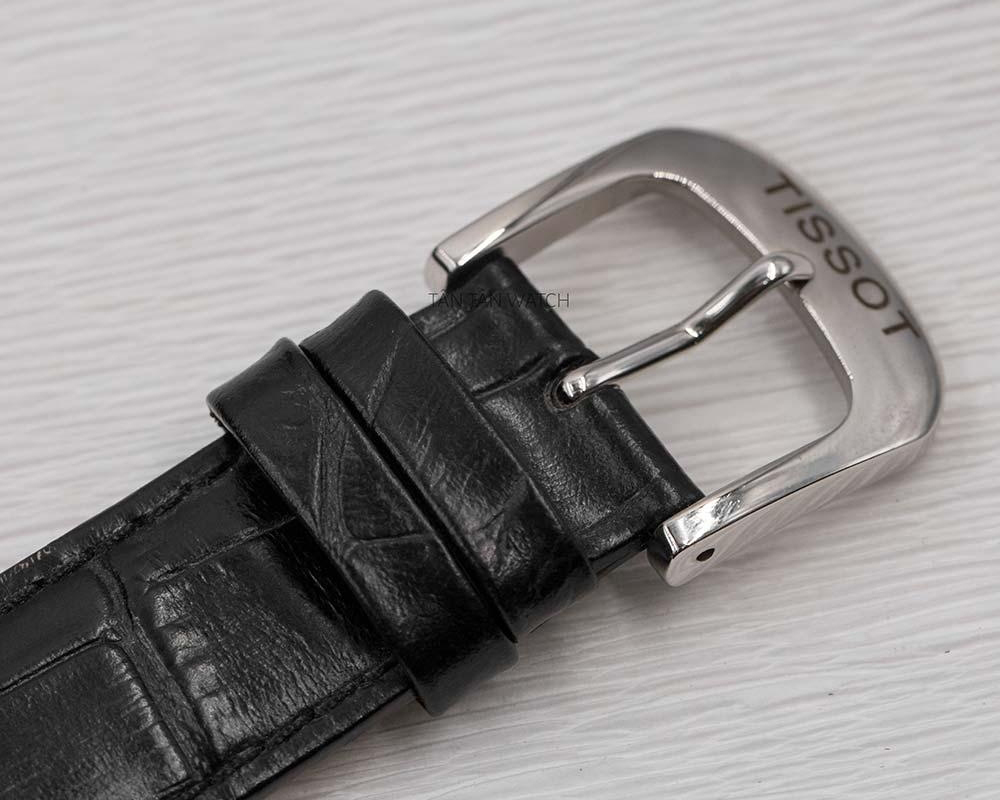 Phần dây đeo của T085.407.16.013.00 được làm bằng chất da cao cấp, mềm mại nhẹ nhàng trên cổ tay. Dây da được may tỉ mỉ bởi đường chỉ thẩm mỹ dọc viền dây thêm phần chắc chắn, bề mặt thuộc đen dập vân cá sấu sang trọng đi kèm khóa cài đơn giản, tháo ra - lắp vào một cách dễ dàng.