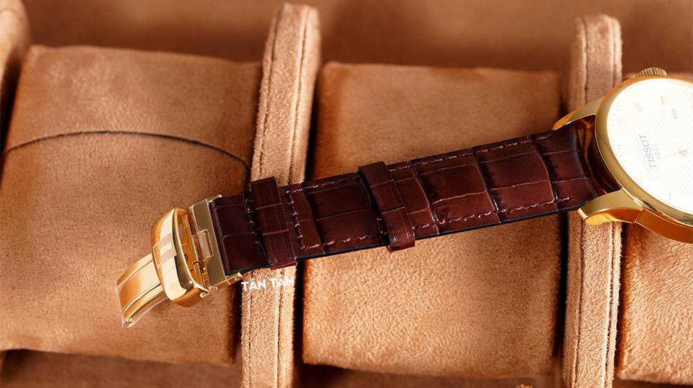 Tương tự những mẫu Tissot dây da khác, Tissot T006.407.36.263.00 được trang bị bộ dây đeo chất da cao cấp thuộc nâu nam tính, lịch lãm đồng điệu với tổng thể thiết kế. Dây đeo 2 lớp được may chắc chắn bởi đường chỉ đều đặn dọc viền với bề mặt ngoài dập vân lớn cá sấu sang trọng và mặt trong mềm mại, thoải mái trên cổ tay.