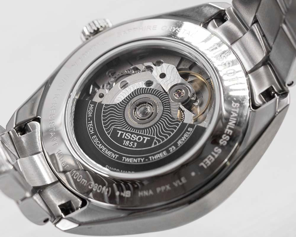 Với thiết kế lộ máy mặt sau, Tissot T101.407.11.031.00 mang đến một trải nghiệm sống động trong từng nhịp chảy của thời gian bởi bộ máy cơ bên trong. Độ “bền” của những chiếc đồng hồ này cũng ở mức đáng kinh ngạc nhờ vào bộ máy Powermatic 80 mạnh mẽ với thời gian trữ cót lên đến 80 giờ. Đây là bộ máy được chính Tập đoàn Swatch thiết kế riêng dành cho Tissot. Bộ máy này có cơ cấu hoạt động dựa trên ý bộ máy cơ tiêu chuẩn ETA 2824-2 nhưng để tăng thời gian trữ cót cho đồng hồ thì ETA đã giảm tần số hoạt động máy từ 28800 nhịp/ giờ xuống còn 21600 nhịp/giờ đồng thời tăng thêm diện tích của bộ tích cót với 23 chân kính được đưa vào bộ máy. Với bộ máy cơ Powermatic 80 này thì người đeo có thể sử dụng thoải mái mà không sợ đồng hồ bị hết năng lượng vào cuối tuần rất tiện dụng.