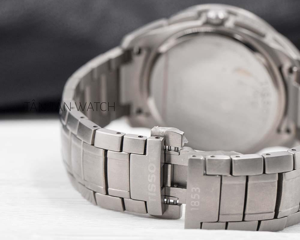 Dây đeo của Tissot T069.417.44.031.00 cũng được sử dụng chất liệu tương tự bộ vỏ tạo nên tổng thể đồng nhất và được gắn kết lại bởi những mắc xích chắc chắn. Khóa bấm tiện lợi cũng được tích hợp để giữ đồng hồ ôm trọn cổ tay người đeo. Cả bộ vỏ và dây đeo đều được chế tác rất kỳ công và tỉ mỉ nên chiếc đồng hồ này mang một giá trị vượt thời gian với sự bền bỉ và sang trọng mà chất liệu titanium mang lại.