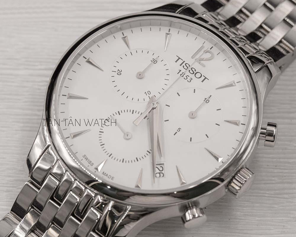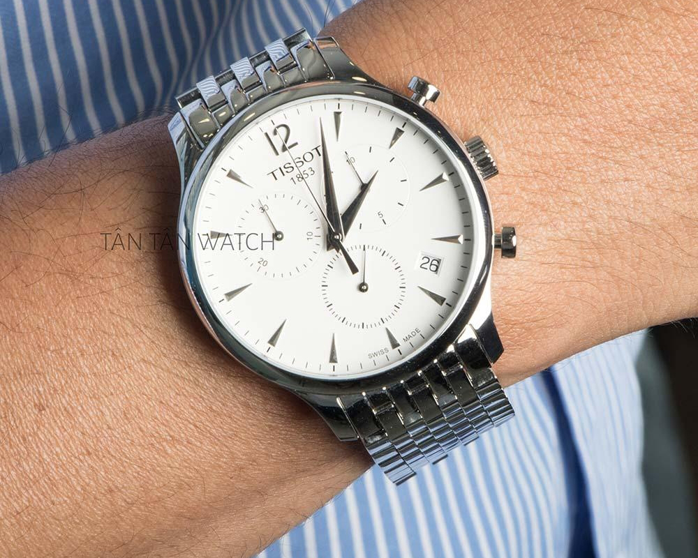 Xuất phát từ cái nôi của ngành đồng hồ Thụy Sĩ danh giá Le Locle, Tissot nổi danh như là một thương hiệu giàu tính truyền thống bậc nhất, luôn cung cấp những chiếc đồng hồ chuẩn "Swiss Made" với giá cả hợp lý. Một trong số đó phải kể đến bộ sưu tập Tissot Tradition với form thiết kế cổ điển vượt thời gian. Trong đó, mẫu đồng hồ Tissot T063.617.11.037.00 là một “tân binh” đặc biệt được trang bị thêm tính năng bấm giờ thể thao chronograph với nhiều mặt số phụ bên trong giúp đồng hồ trông năng động, mạnh mẽ hơn. Đây là một món quà tuyệt vời cho các quý ông trong công việc hàng ngày cũng như những sự kiện sang trọng.