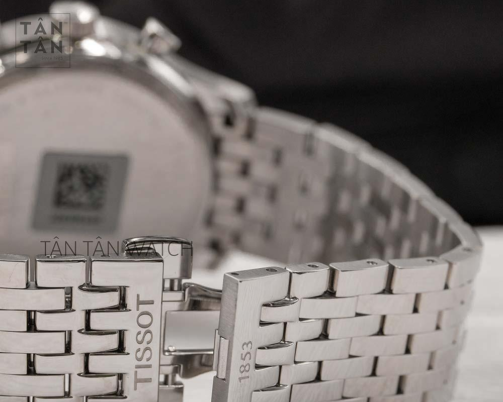 Toàn bộ các chi tiết trên đồng hồ Tissot T063.617.11.037.00 điều được hoàn thiện tỉ mỉ với độ sắc nét cao theo chuẩn "Swiss Made". Tất cả các kim và cọc số giờ làm bằng thép sáng bóng, bộ kim chính kiểu dauphine sang trọng. Dây đeo đồng hồ cũng được làm với những mắt nhỏ liên kết với nhau rất mềm mại và ôm tay trang bị cùng khóa bướm tiện lợi, dễ sử dụng.