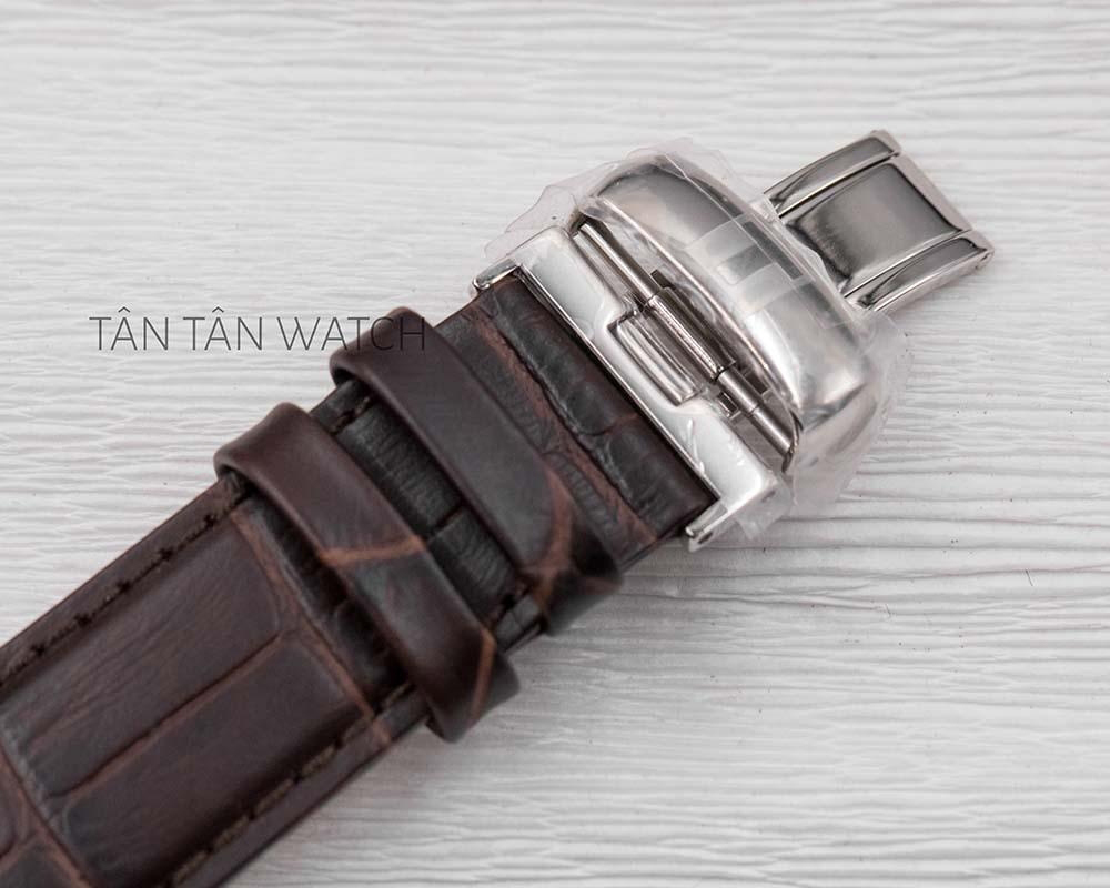 Bên cạnh đó, T063.610.16.037.00 được trang bị dây da cao cấp chính hãng màu nâu sẫm mang lại vẻ ngoài thanh lịch, sang trọng, đúng chuẩn một quý ông. Chất liệu da được hoàn thành tỉ mỉ từng đường kim mũi chỉ, qua nhiều khâu xử lý và kiểm định chất lượng nên khách hàng có thể yên tâm về độ bền. Hơn nữa, dây đeo đồng hồ chế tác hoàn toàn từ da bê may chỉ tệp màu chắc chắn sau đó tạo bề mặt bằng kỹ thuật dập vân không những đẹp mà còn cho cảm giác nhẹ nhàng trên cổ tay kèm theo sự bền bỉ, thoải mái với bề mặt dưới hút ẩm tốt. Đi kèm dây đeo là khóa cân bằng tiện lợi dễ dàng đeo vào - tháo ra, giúp hạn chế bị gãy, hư dây.