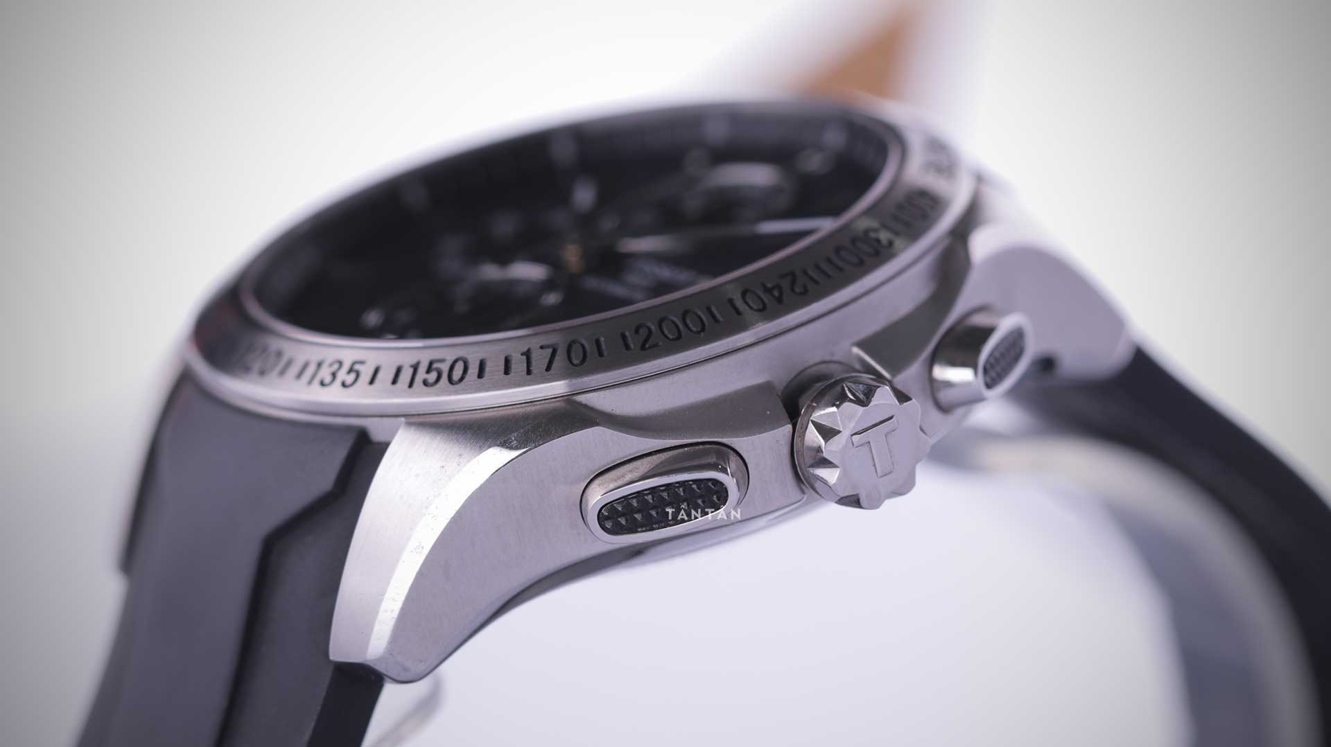 Phía trên mặt số là vòng bezel với chức năng đo tốc độ dựa trên một khoảng cách cố định Tachymeter thường thấy ở đồng hồ chronograph. Viền bezel này được làm từ chất liệu thép không gỉ hạn chế bị oxy hóa, với bề mặt chải xước mạnh mẽ, phong trần của phái mạnh mang đến vẻ ngoài sáng bóng như mới cho dù đeo trong một khoảng thời gian dài.