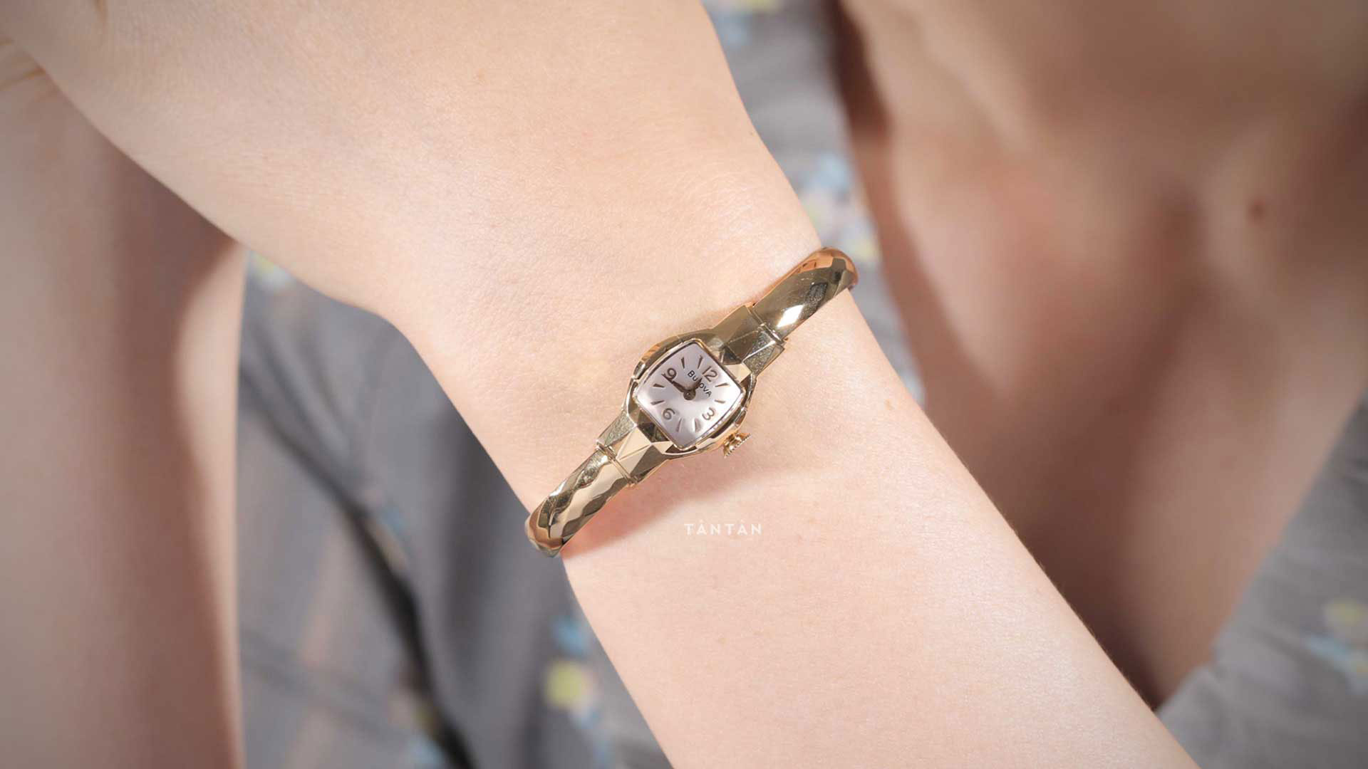 Thân vỏ đồng hồ được làm từ thép không gỉ nguyên khối mạ PVD màu vàng nổi bật, tổng thể thiết kế vỏ và dây đeo được làm liền lạc giống như một chiếc lắc tay xinh xắn. Đây là một kiểu thiết kế đồng hồ rất thịnh hành vào thời kỳ đó, một thời kỳ hoàng kim của ngành đồng hồ truyền thống. Khi mà công nghệ kỹ thuật chưa phát triển như ngày nay, việc sở hữu một chiếc đồng hồ đeo tay cũng là ước mơ của nhiều người, những chiếc đồng hồ “Bulova American Girl” được mang vào thời kỳ đó được xem như là một lời khẳng định địa vị của chủ sở hữu.