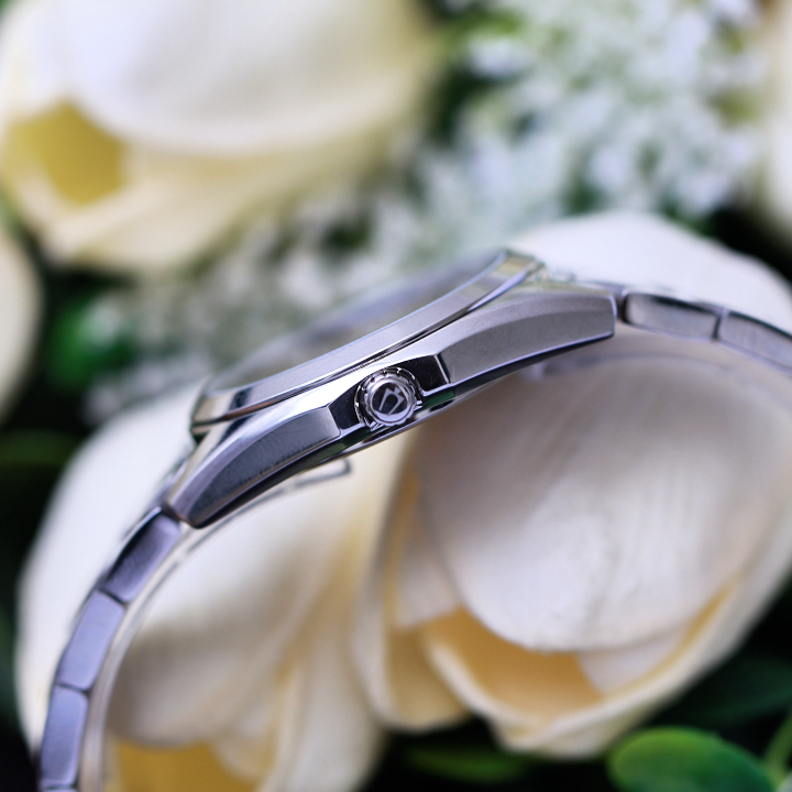 Tất cả chi tiết hòa làm một tạo nên một thiết kế độc đáo, thời thượng và cao cấp giúp nâng tầm sang trọng của các quý cô ngay lập tức. Bộ 3 kim dauphine cách điệu cắt dứt khoát đầu và đuôi kim trông hiện đại hơn, hai kim giờ-phút được phủ dạ quang giúp người dùng có thể theo dõi thời gian trong điều kiện thiếu sáng, kim giây được làm thanh mảnh giúp tổng thể thiết kế nhẹ nhàng và nữ tính hơn.