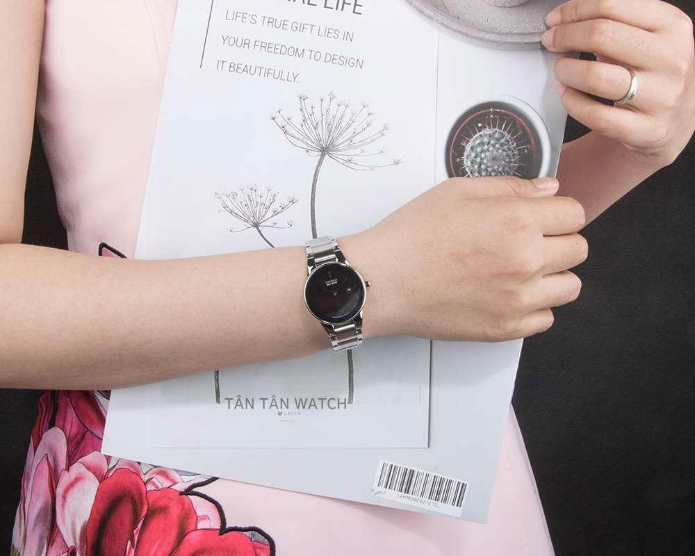 Citizen Axiom GA1050-51E ghi điểm bởi lối thiết kế cực kỳ đơn giản nên rất dễ dàng kết hợp với những xu thế thời trang khác nhau. Chính vì vậy, chiếc đồng hồ chính hãng Citizen Axiom sẽ khiến cho mọi cô nàng yêu thích ngay từ cái nhìn đầu tiên. Sở hữu mặt số màu đen bo tròn cổ điển lực bỏ các chi tiết độc đáo tạo nên phong cách trẻ trung hiện đại. Chiếc đồng hồ với thiết kế tối giản đặc trưng chỉ một vạch cọc số 12 giờ cùng bộ 2 kim stick thanh mảnh được đánh bóng sang trọng. Chi tiết "Citizen" cùng bộ máy năng lượng độc quyền "Eco-Drive" cũng được trau chuốt sắc sảo đặt gọn tại vị trí 12h. Bên cạnh đó, thương hiệu còn thiết lập ô cửa sổ lịch ngày tại góc 3h mang tính tiện ích cho các nàng không bỏ lỡ những dịp quan trọng.