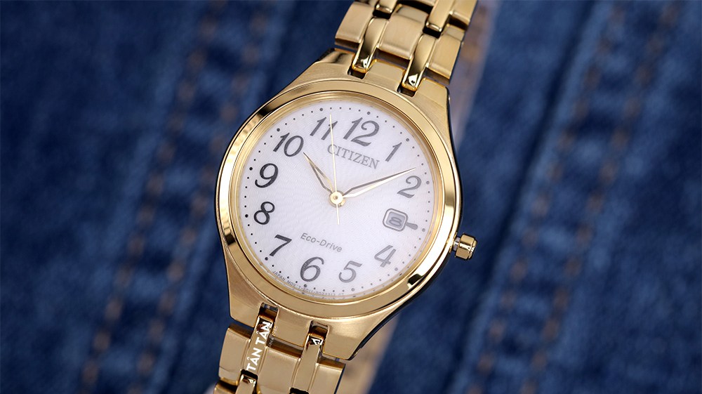 Tổng thể thiết kế đơn giản với màu vàng nữ tính, trưởng thành của đồng hồ Citizen EW2482-53A