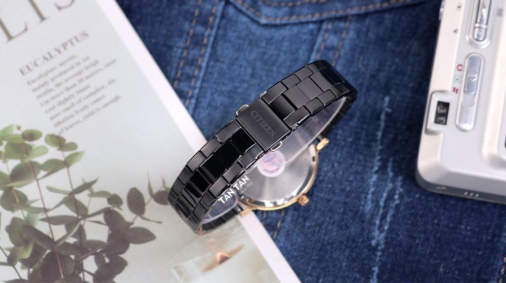 Ngoài ra, Citizen EM0768-54E còn được trang bị dây đeo thép không gỉ mạ màu đen liền lạc với bộ vỏ tạo một tổng thể màu đen vừa tạo cảm giác chắc chắn, thoải mái khi trên tay vừa mang lại khả năng mix- match cao trong từng phong cách thời trang. Thiết kế dây đeo 3 mắt đánh bóng ở giữa kết hợp chải xước hai bên vô cùng thời trang. Đi cùng dây đeo này là khóa gập chắc chắn được khắc logo “Citizen” chính hãng hỗ trợ điều chỉnh tùy ý sao cho phù hợp với kích thước cổ tay của các nàng, trang bị nút bấm thông mình rất thuận tiện cho thao tác tháo-mở.
