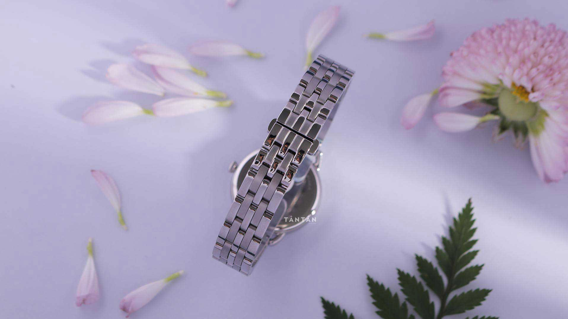 ✓ Dây đeo thép không gỉ 5 liên kết nhỏ nhắn, đánh bóng-xước đẹp mắt đi kèm khóa gập tiện lợi.