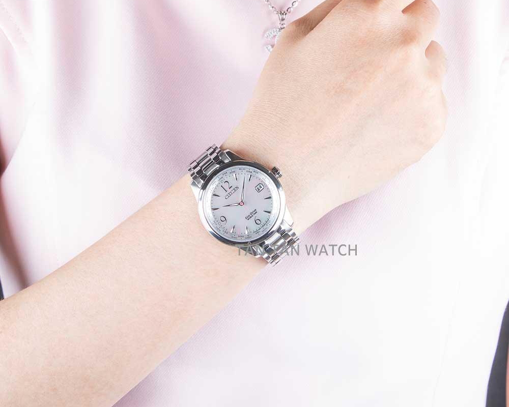 Citizen FC8001-87D với tổng thể màu trắng bạc có mặt số được khảm xà cừ màu trang nhã, hài hòa với lối thiết kế sang trọng. Khi chuyển động theo ánh sáng, đồng hồ cũng chuyển màu theo tạo hiệu ứng lấp lánh, thu hút mọi ánh nhìn. Vân xà cừ trên mỗi chiếc đồng hồ mang dấu ấn riêng biệt của chiếc đồng hồ mà không có vân nào giống vân nào, nên khi sở hữu đồng hồ Citizen FC8001-87D đồng nghĩa với việc sở hữu sản phẩm độc nhất.