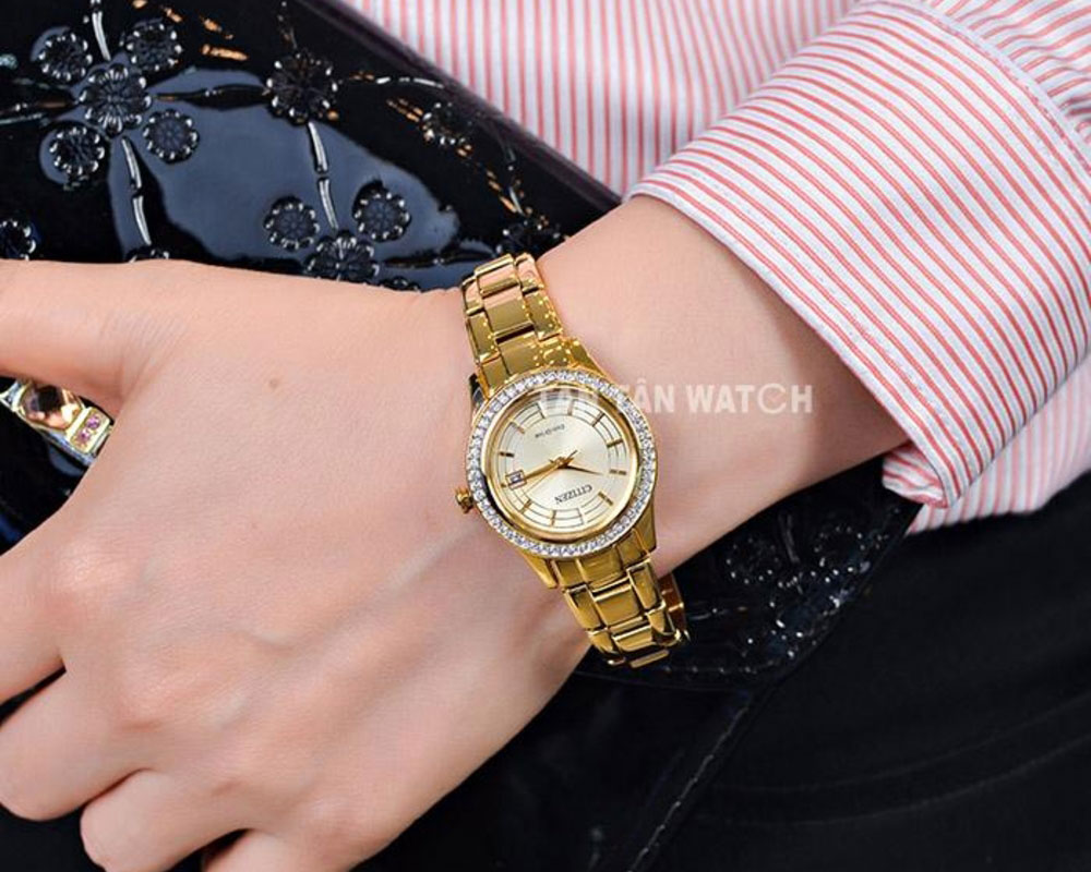 Mỗi sản phẩm đồng hồ Citizen ra đời là một tác phẩm nghệ thuật mang đậm phong cách riêng biệt, đặc biệt với thiết kế của Citizen mang vẻ nghệ thuật đầy tinh tế, kiêu hãnh đậm chất quý cô quyền quý. Chính vì vậy, Citizen FE1122-88P với tổng thể vàng gold và 52 viên swarovski sẽ là chiếc đồng hồ có thể đồng hành với các cô nàng khắp mọi nơi dù khi đi làm, đi chơi hay kiêu sa đẳng cấp trong các buổi tiệc, giúp tăng thêm sự tự tin cho chủ sở hữu.