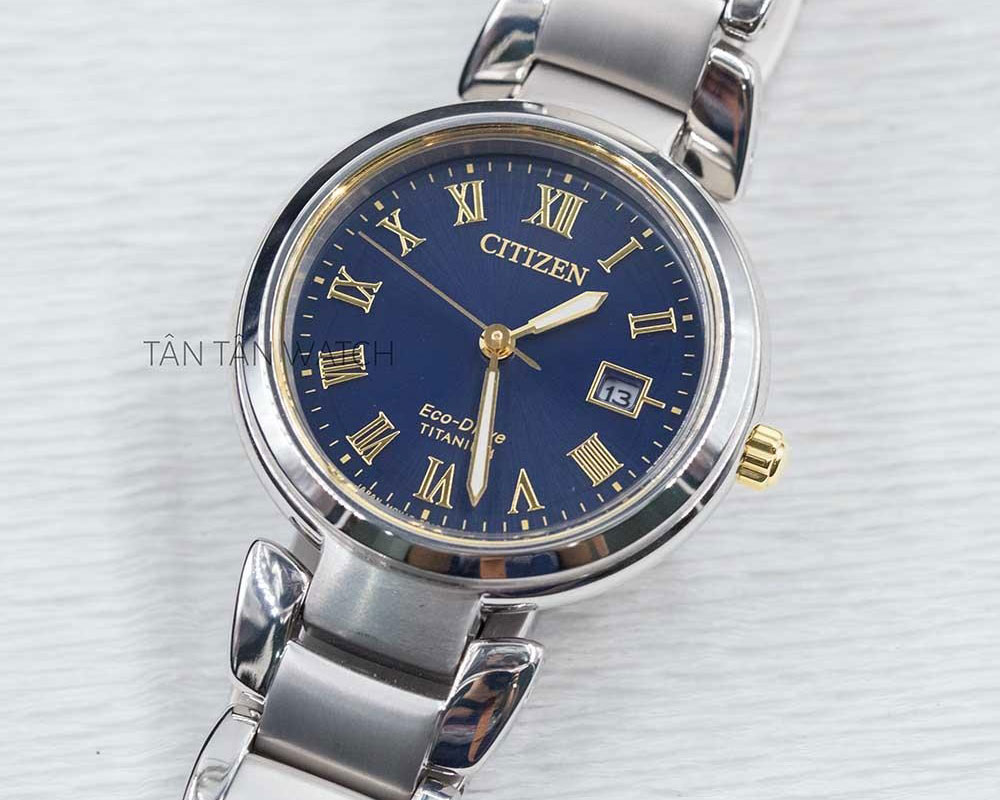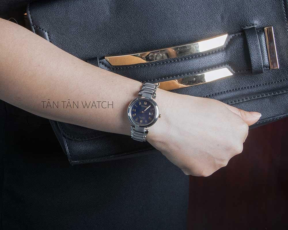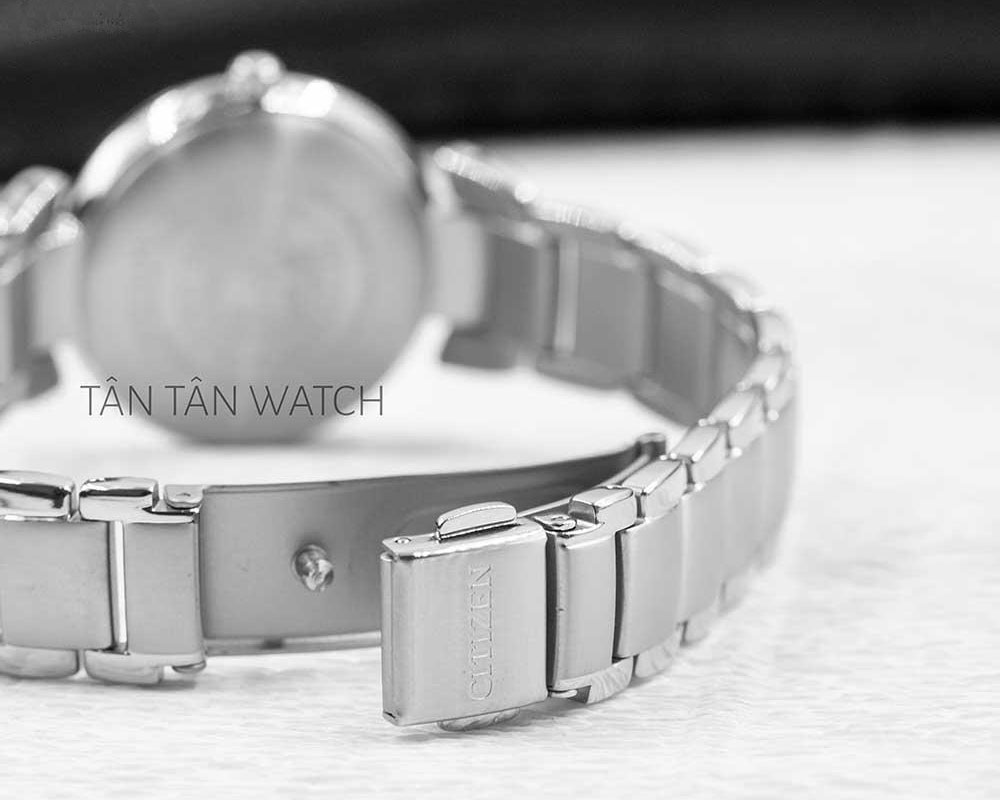 Là một đại diện trong Bộ sưu tập Citizen Super Titanium, tổng thể đồng hồ hầu hết được làm từ chất liệu Super Titanium màu trắng bạc, một loại chất liệu quý hiếm siêu bền nhẹ với khả năng chống va đập rất hiệu quả và an toàn với làn da nhạy cảm. Mặt kính Sapphire trong suốt hạn chế những trầy xước, chống lóa tốt cho chủ sở hữu một cái nhìn mãn nhãn khi quan sát. Thiết lập tính năng lịch ngày tại vị trí 3h cho các nàng tiện lợi quản lý thời gian hơn.