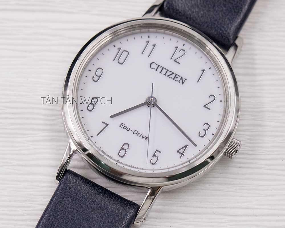 Citizen EM0571-16A được thiết kế đơn giản với nền trắng tinh khôi mang đậm nét truyền thống
