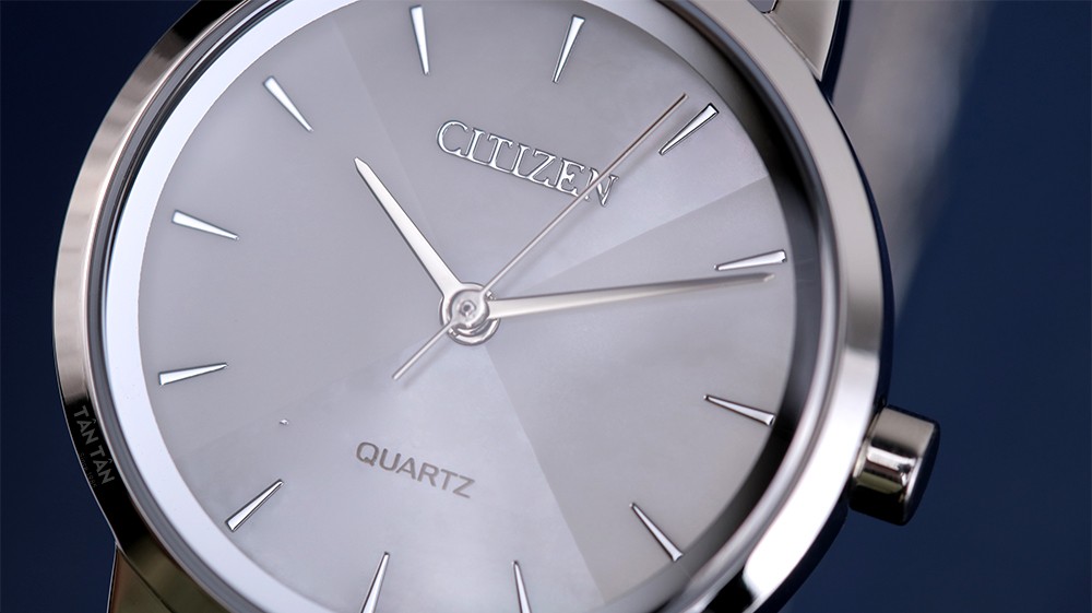 Trên mặt số đơn giản là các mốc giờ thể hiện bằng các khối tam giác cân thon dài hướng tâm được gọt giũa tinh tế trải đều trên vòng chỉ thời gian giúp người dùng thuận tiện xem giờ. Vị trí 12h luôn là tâm điểm đắt giá với logo “Citizen” độc quyền với ý nghĩa trong tiếng Anh là “người dân”, các nhà sáng lập Citizen mong muốn quốc tế hóa thương hiệu, mang đến chất lượng sản phẩm tốt và giá cả hợp lý cho người dân sử dụng. Thêm vào đó, thông tin về bộ máy “Quartz” cũng được thể hiện ở hướng 6 giờ bằng những nét trau chuốt sắc sảo và được phủ một màu đen nhạt khá riêng biệt.