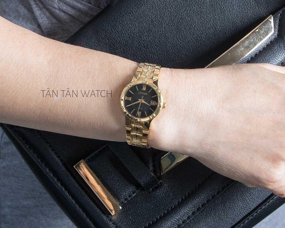 Từ khi trình làng, chiếc đồng hồ Citizen EU6022-54 đã gây ấn tượng mạnh mẽ bởi thiết kế sang trọng với màu vàng gold thời thượng và bắt mắt. Mặt số analog cơ bản 3 kim 1 lịch ngày, bộ máy Quartz Nhật Bản mạnh mẽ bên trong với mức giá thấp, Citizen EU6022-54 chắc chắn sẽ là “món phụ kiện” hoàn hảo cho bộ sưu tập thời trang của phái đẹp để thay đổi hàng ngày.
