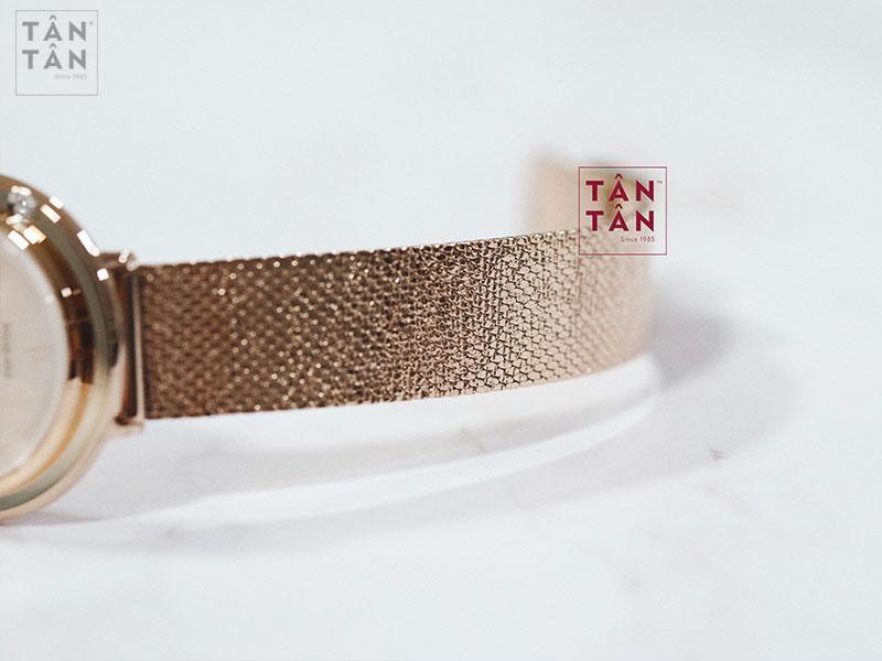 Tập trung làm nổi bật mặt số, phần dây đeo đã được nhà thiết kế tinh giản lại rất nhiều. Tuy đơn giản nhưng lại đặc biệt, khí chất với phần dây đeo được thiết kế theo dạng lưới khác biệt, thân dây không làm từ nhiều các mắt xích truyền thống mà được đan bởi các sợi thép làm phẳng bề mặt như vân lụa đặc biệt, quý phái, mang lại cảm giác nhẹ nhàng và thoải mái khi đeo.