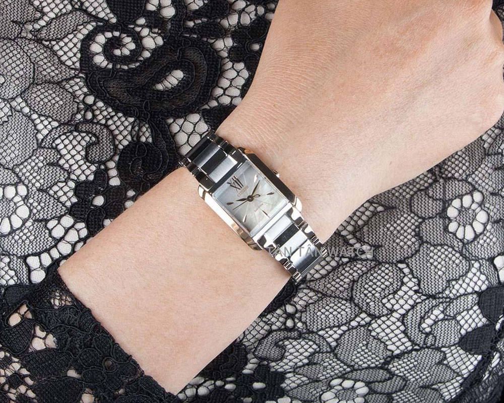 Nằm trong BST Citizen L trứ danh, chiếc đồng hồ Citizen EW5554-82D đã chiếm trọn trái tim phái đẹp kể từ khi ra mắt với vẻ ngoài thanh lịch của mình. Với tông màu trắng bạc chủ đạo từ chất liệu, chiếc đồng hồ dễ dàng thuận ý bất kỳ ai. Citizen EW5554-82D sở hữu mặt số vuông kết hợp kỹ nghệ khảm xà cừ tinh tế rất đẹp mắt, mang đến một sắc thái vô cùng thu hút dưới nhiều góc độ ánh sáng khác nhau.