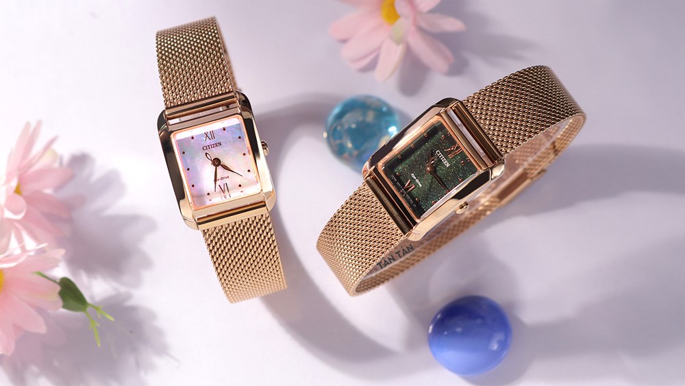 Nằm trong BST Citizen L 10th Aniversary, Citizen EW5593-72X đại diện cho sự phá cách, độc đáo nhưng không kém phần nữ tính, sang trọng và thời thượng. Với thiết kế mặt số hình chữ nhật độc đáo cùng màu chủ đạo vàng hồng - xanh lá, dây mesh đã trở thành xu hướng đối với các cô nàng ưa thích sự mới lạ. Không chỉ gây ấn tượng bởi các chi tiết nổi bật, chiếc đồng hồ này còn được trang bị bộ máy năng lượng ánh sáng mỏng nhẹ, vô cùng tiện lợi và hữu dụng với phái nữ.