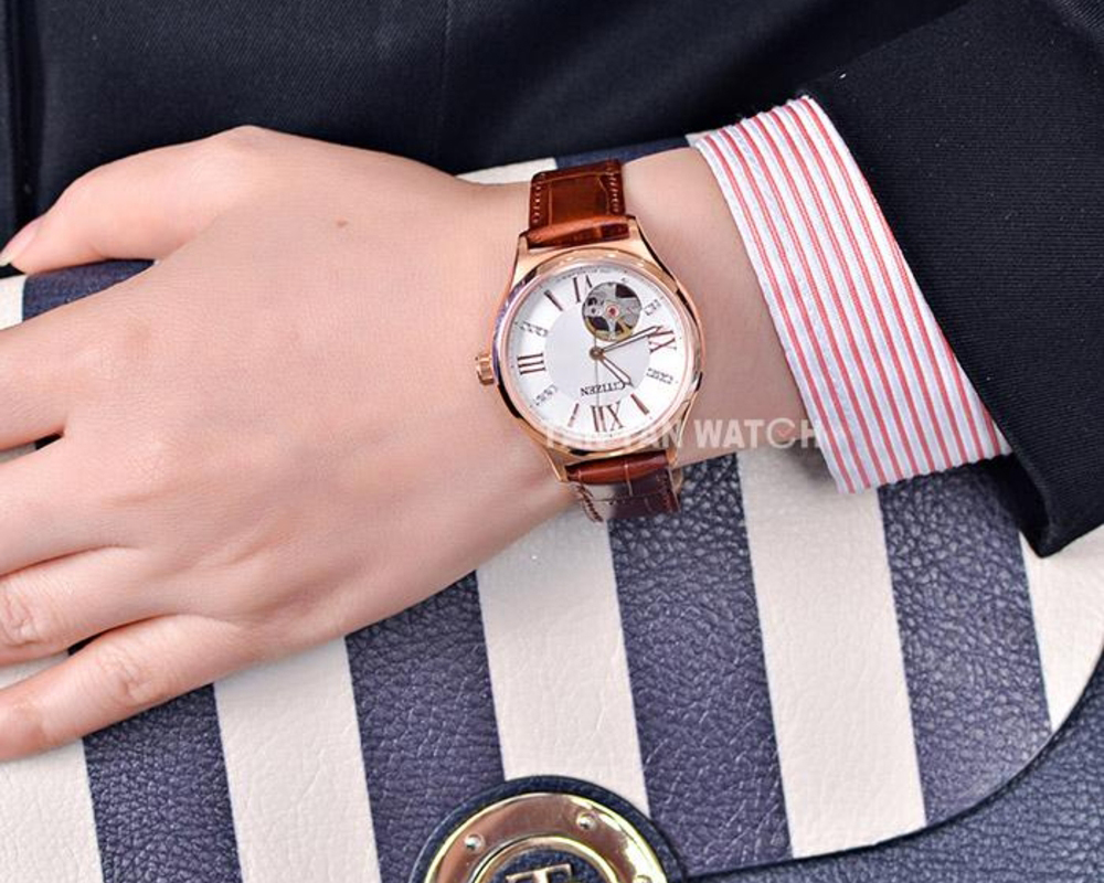 Luôn mang đến những tặng phẩm thời gian tôn vinh và dành tặng riêng cho phái đẹp, Citizen đã cho ra mắt dòng Citizen Mechanical Lady. Một trong những thiết kế vô cùng độc đáo, màu nâu - vàng hồng kiêu sa với thiết kế Open-heart độc đáo đẳng cấp mang tên Citizen PC1003-07A. Chắc hẳn sẽ mang đến cho các quý cô yêu đồng hồ Citizen có một trải nghiệm thật thú vị và quyến rũ hơn bao giờ hết.