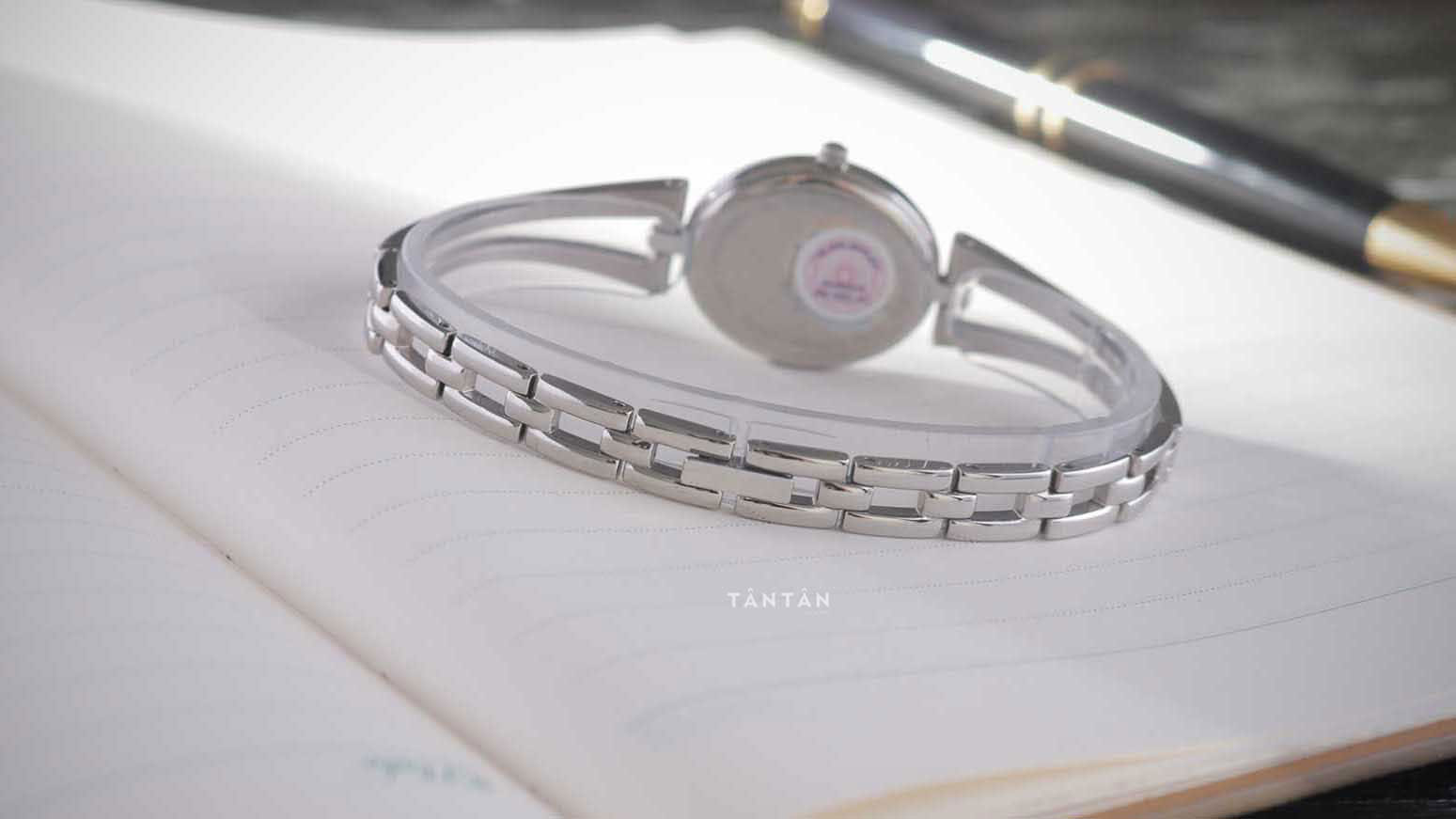 Đi cùng thiết kế là bộ khoá cài dễ dàng tháo/mở tiện lợi. Chiếc đồng hồ này sẽ là món trang sức phù hợp với các bạn nữ đang tìm kiếm sự sang trọng pha lẫn nét cổ điển, phù hợp mọi loại trang phục từ chốn công sở đến những buổi vui chơi hẹn hò.