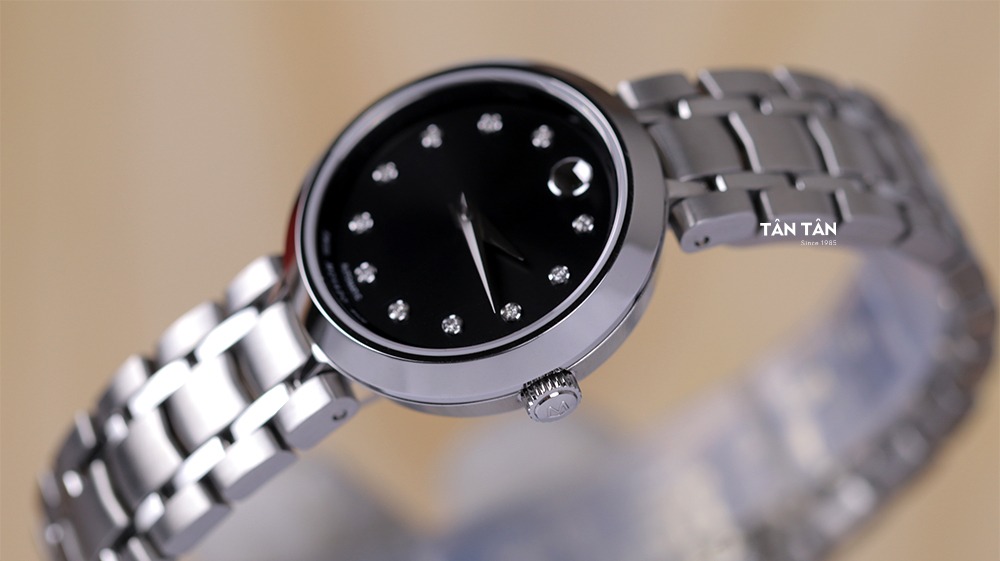 Điểm nổi bật nhất chính là các mốc giờ đính 11 viên kim cương đính làm tăng thêm sự lộng lẫy kiêu sa của chiếc đồng hồ. Đây là loại đá quý rất được lòng các quý cô khis cho chiếc Movado 0606919 càng trở nên đáng sở hữu hơn bao giờ hết. Hoàn thiện thêm các mốc giờ làm cho chiếc Movado 0606919 vừa mang nét độc đáo sang trọng, vừa đảm bảo tính năng giúp người sở hữu dễ dàng quan sát thời gian hơn.