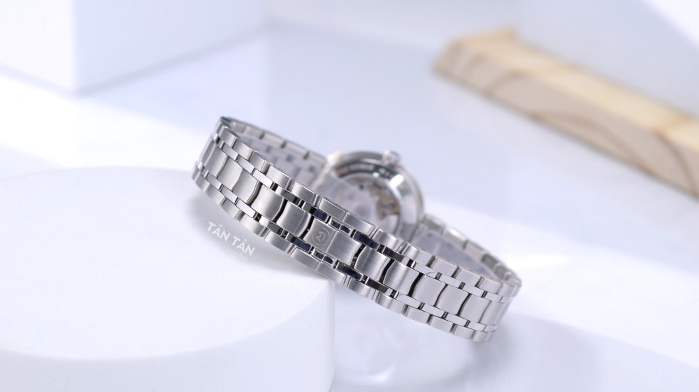 ✓ Mặt số khảm xà cừ màu trắng thanh lịch với vòng 29 viên diamond lấp lánh vô cùng sang trọng.