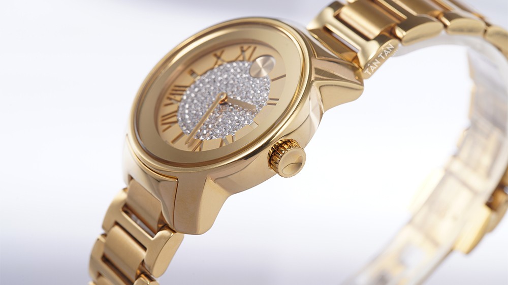 ✓ Mặt số thiết kế hai lòng với vòng trung tâm đính Swarovski sang trọng, quý phái.
