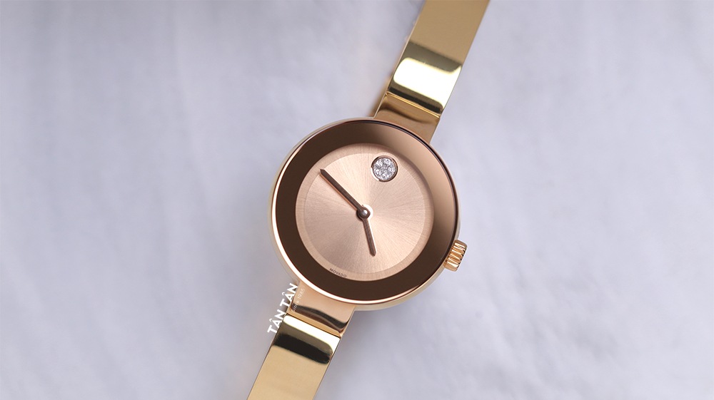 Thiết kế như chiếc lắc tay phủ màu vàng hồng nữ tính, quý phái của Movado 3600286