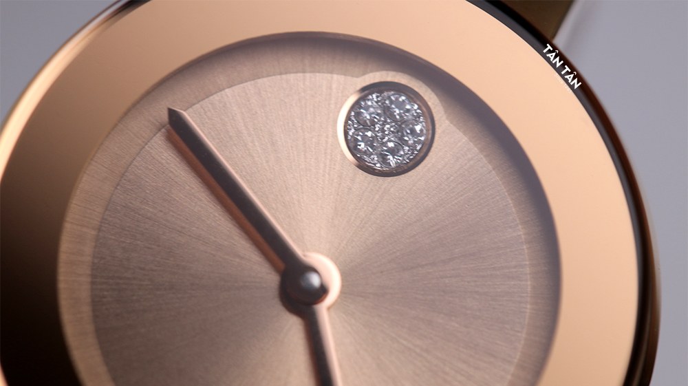 Mẫu đồng hồ Movado 3600286 có mặt số ấn tượng với những chi tiết đơn giản “một chấm hai kim” đặc trưng của Movado được sắp xếp rất hài hòa và sống động. Tại vị trí 12h là biểu tượng logo của Movado hình chấm tròn viền thép đính đá tựa như ánh mặt trời rực rỡ. Phía trên logo là 7 viên đá swarovski được đính thành vòng tròn sang trọng và nổi bật, tạo nên điểm nhấn phá cách cho mặt số đồng hồ. Nằm đối xứng với biểu tượng logo thương hiệu là dòng chữ “MOVADO” tại góc 6h sắc nét.