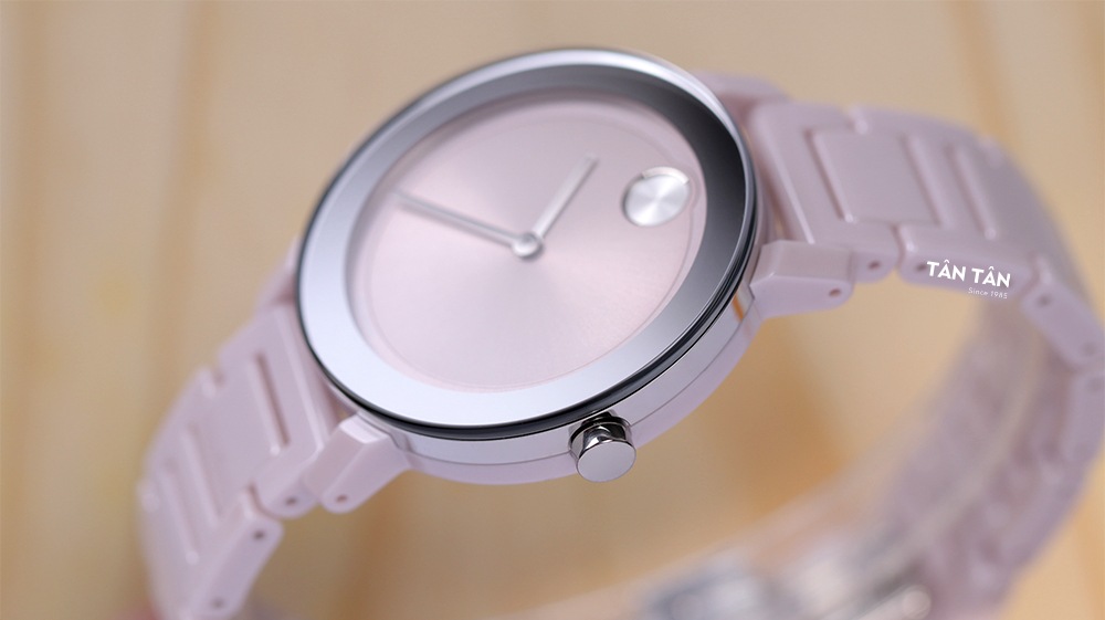 Sử dụng tông màu hồng nữ tính điểm xuyết các chi tiết màu bạc tinh tế và nhẹ nhàng, mẫu đồng hồ này chính là sự lựa chọn của những cô nàng yêu thích phong cách thanh lịch, sang trọng. Movado 3600709 có đường kính vỏ 36mm, độ dày 8mm rất phù hợp với cổ tay của những cô nàng Việt Nam. Với độ chống nước được trang bị là 3ATM, Movado 3600709 có thể hỗ trợ cho người dùng những hoạt động nhẹ nhàng thường nhật như rửa tay hoặc đi mưa.
