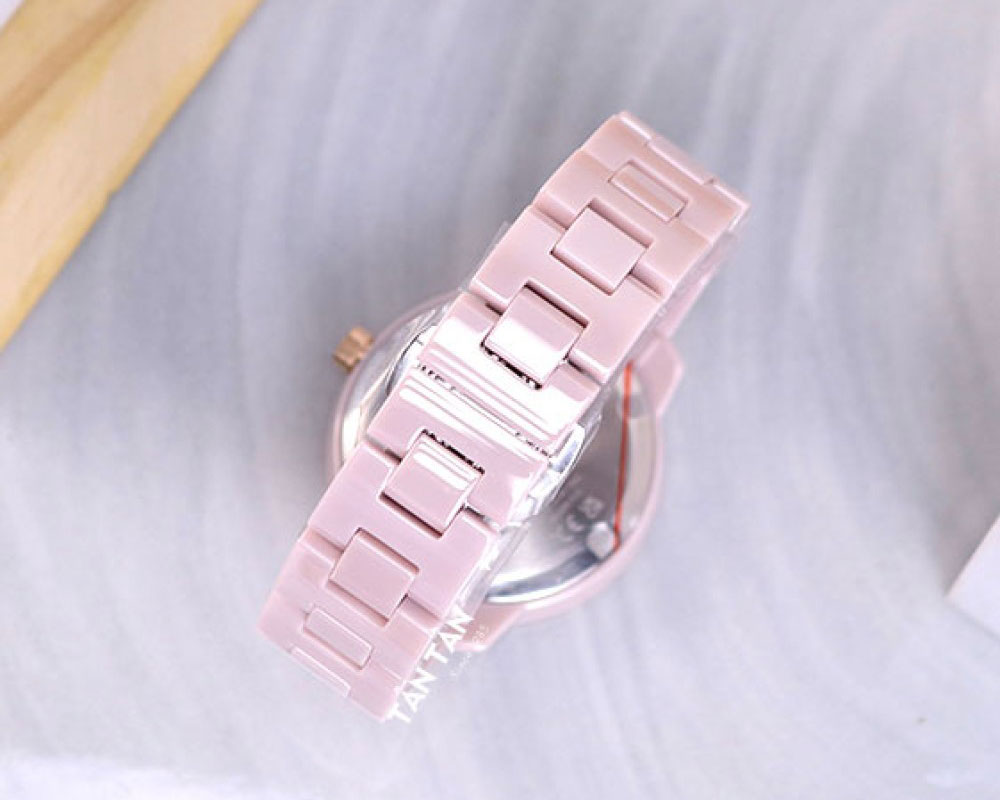 Với thiết kế theo hơi hơi thể thao cho những cô nàng cá tính nên bộ vỏ được làm lớn hơn 38.5mm, nên các cô nàng có cổ tay mảnh khảnh không nên đeo. Đi liền với bộ vỏ là dây đeo thiết kế H-link cùng chất liệu ceramic hồng liền lạc bởi khóa bướm tiện lợi và thẩm mỹ đi kèm dây đeo, ôm trọn cổ tay giúp cho người đeo tự tin vận động thoải mái. Ngoài ra, Movado 3600935 còn có khả năng kháng nước WR50 (tương đương khả năng chịu áp lực nước ở độ sâu 50m) cho phép người dùng rửa tay, rửa mặt, đi mưa hoặc đi tắm nước lạnh. Tuy nhiên, bạn không nên mang đi tắm vì sau một thời gian sử dụng thì việc chống nước có thể giảm so với lúc mới.