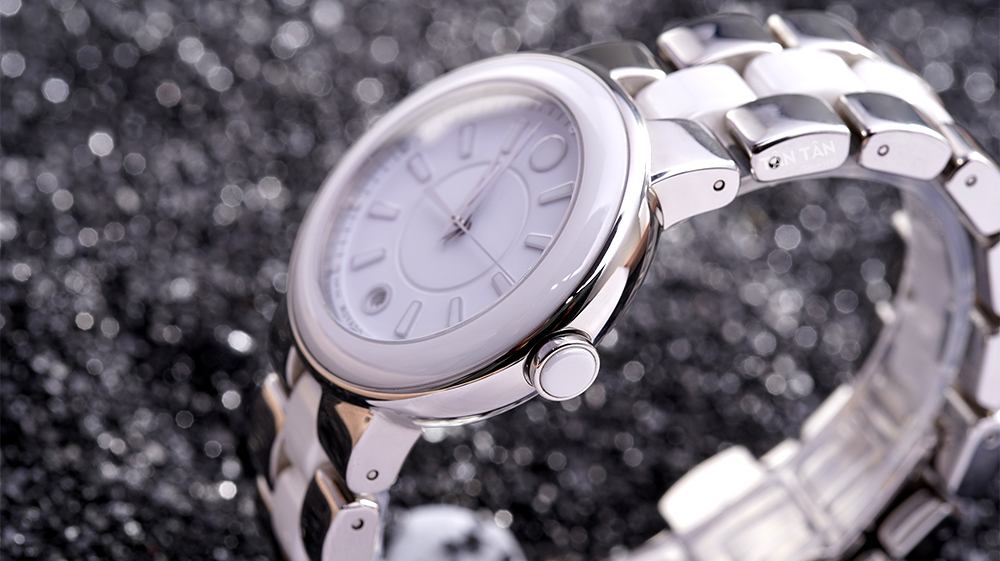 ✓ Dây đeo được kết hợp giữa chất liệu thép không gỉ và Ceramic trắng thanh lịch.