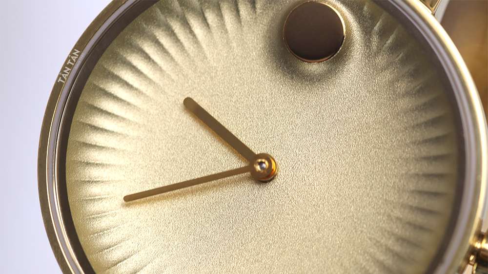Movado 3680014 sở hữu mặt số được làm từ chất liệu nhôm bo tròn mạ PVD vàng gold được phun cát lõm, với vân sơn nhám cực đẹp mắt. Điểm đặc biệt của thiết kế mặt số này chính là được hoàn thiện với 60 vân gợn sóng hướng tâm mô phỏng vẻ đẹp của quang cảnh khi nhìn từ trên cao xuống các cồn cát sa mạc Sahara. Với góc nhìn đa chiều chúng ta dễ dàng chiêm ngưỡng những đường vân, khía cạnh nơi ánh sáng có thể len lỏi tạo chiều sâu cho mặt số.