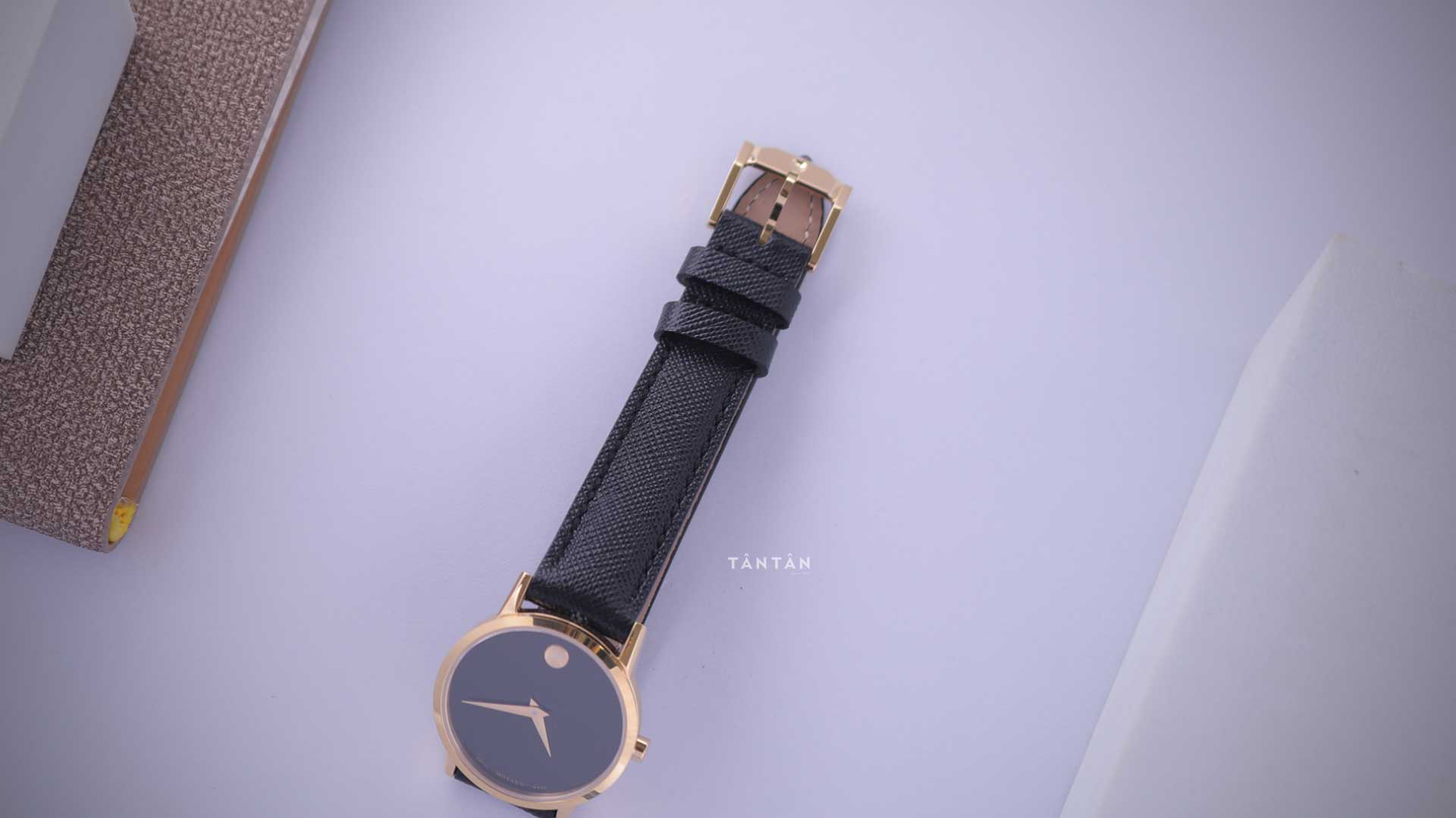 Movado 0607205 thuộc dòng đồng hồ Movado dây da đen nên được trang bị dây da bê cao cấp màu đen. Với độ đàn hồi cao, mềm mại với thiết kế hai lớp được may cẩn thận tinh tế và bền chắc, với mặt trong là lớp da lót bền chắc chịu mồ hôi, không gây dị ứng, thông thoáng hơn cho da cùng mặt ngoài vân saffiano sang trọng, mới lạ. Với trang bị dây da này sẽ giúp đồng hồ Movado nữ nhẹ hơn và giúp phái nữ dễ phối đồ hơn với các trang phục công sở hàng ngày. Đi kèm với dây da là khóa cài đơn giản ton sur ton với bộ vỏ đồng hồ, dễ dàng đeo vào-tháo ra trong các hoạt động hàng ngày.