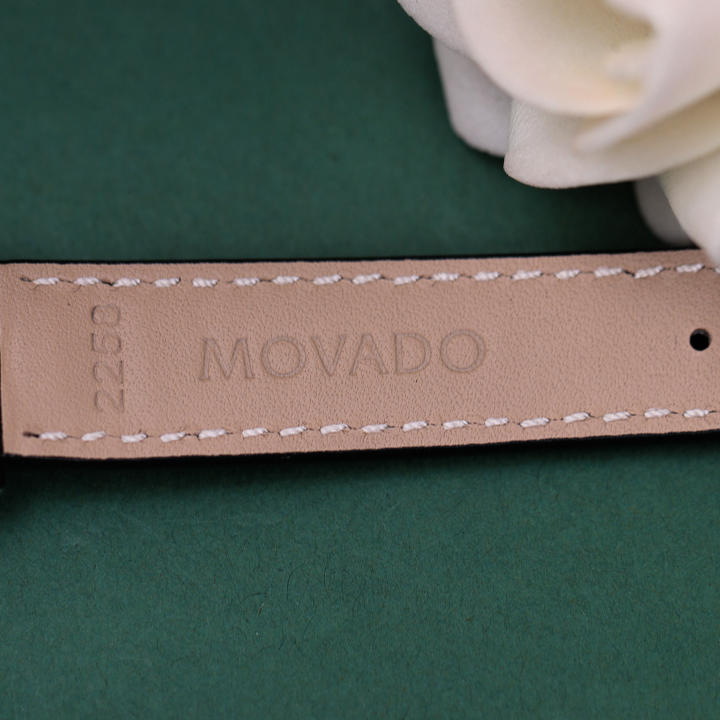 Bên cạnh đó, Movado 0607274 được trang bị dây da bê cao cấp chính hãng có độ dẻo dai và chịu nước cực cao, thoáng khí, không gây bí da khi đeo lên tay. Đặc biệt sử dụng 100% da thật để làm dây đeo nên rất nhẹ, bền và không dễ bong tróc. Với các đường chỉ may cùng màu đen trên bề mặt dây tạo nên sự chắc chắn và tinh tế hơn. Đi kèm với dây da là khóa cài đơn giản màu bạc đồng điệu với bộ vỏ đồng hồ, dễ dàng đeo vào-tháo ra giúp ôm trọn cổ tay mang lại cảm giác mềm mại, chắc chắn khi đeo trên tay.