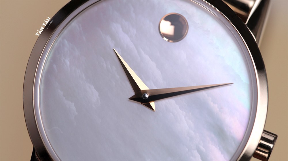 ✓ Mặt số khảm xà cừ trắng tinh khiết mang đặc trưng “một chấm hai kim”.