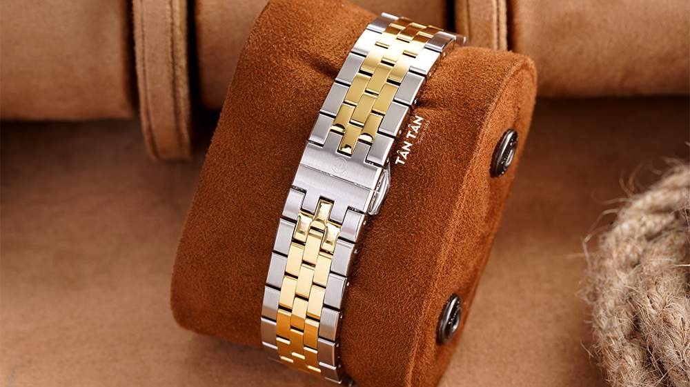 4. Dây đeo thép không gỉ bền bỉ phối demi vàng gold hợp thời trang