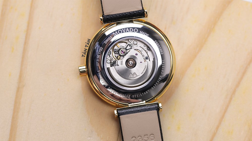 Movado Museum Classic 0607676 được trang bị bộ máy Automatic chuẩn Swiss Made cực kỳ mạnh mẽ và bền bỉ. Bộ máy sở hữu 25 chân kính, hoạt động với tần số 28800 nhịp/giờ và thời gian trữ cót khoảng 38h trong điều kiện hoàn hảo, tuy nhiên tùy thuộc vào nhiều yếu tố mà thời gian trữ cót thực tế có thể không đạt mức tối đa. Những chuyển động nhịp nhàng bên trong cỗ máy thời gian được phô diễn sinh động thông qua thiết kế “exhibition” ở mặt sau bộ vỏ và được bảo vệ bởi lớp kính sapphire trong suốt.