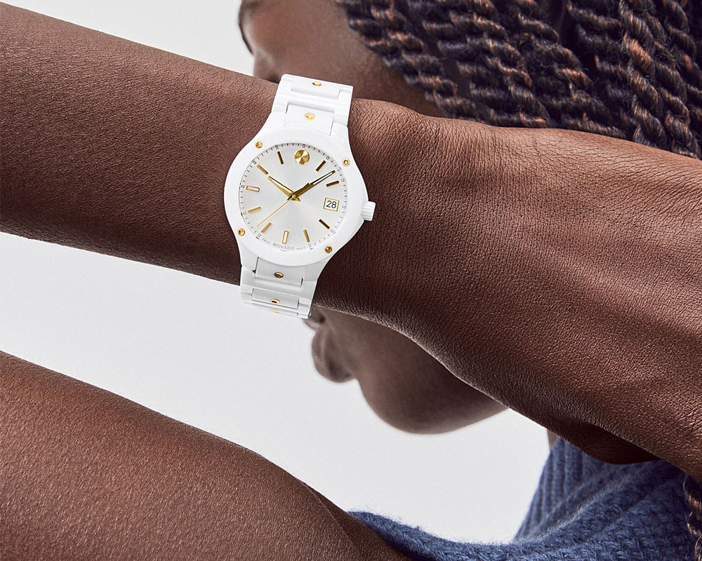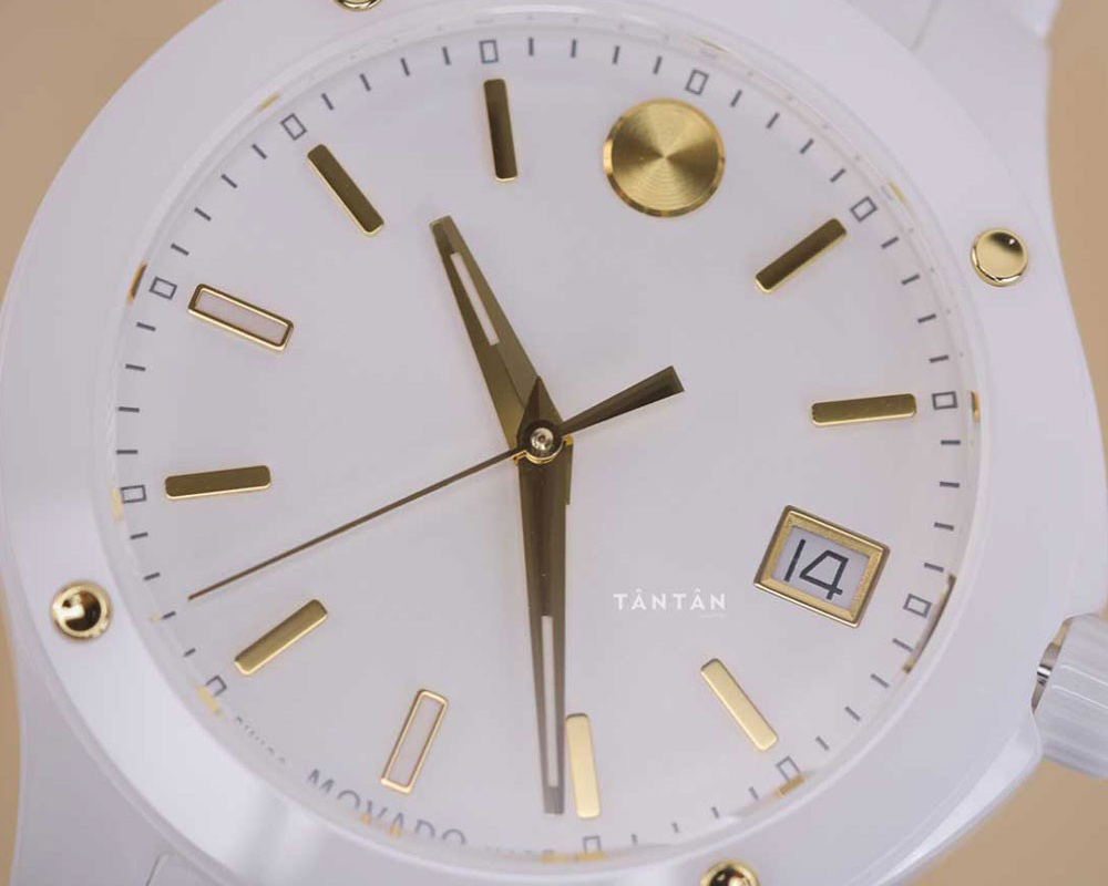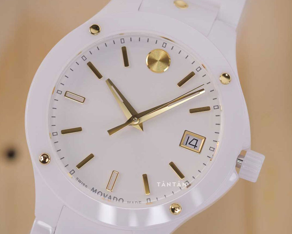 Movado 0607740 mang sự sang trọng tinh tế đáp ứng phong cách thể thao hiện đại. Chiếc đồng hồ tuyệt đẹp này tạo nên một ấn tượng khó phai với màu trắng tổng thể, được điểm xuyết thêm các chấm tròn lõm mạ vàng gold trên niềng bezel và dây đeo tạo nên một tổng thể vô cùng phá cách và thời thượng.