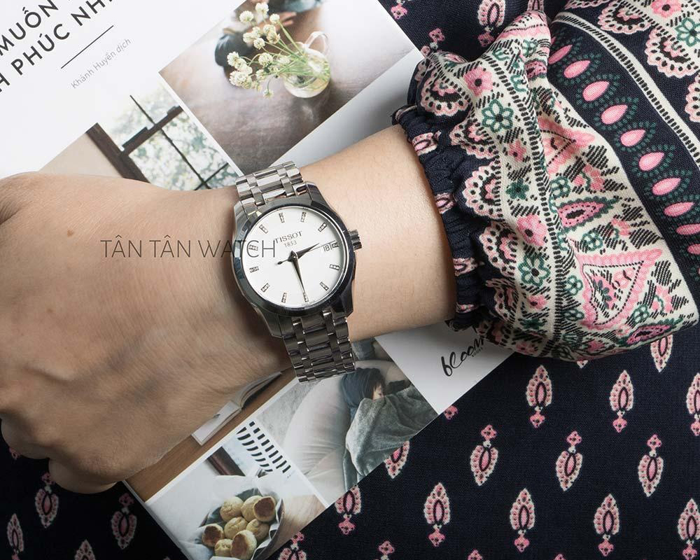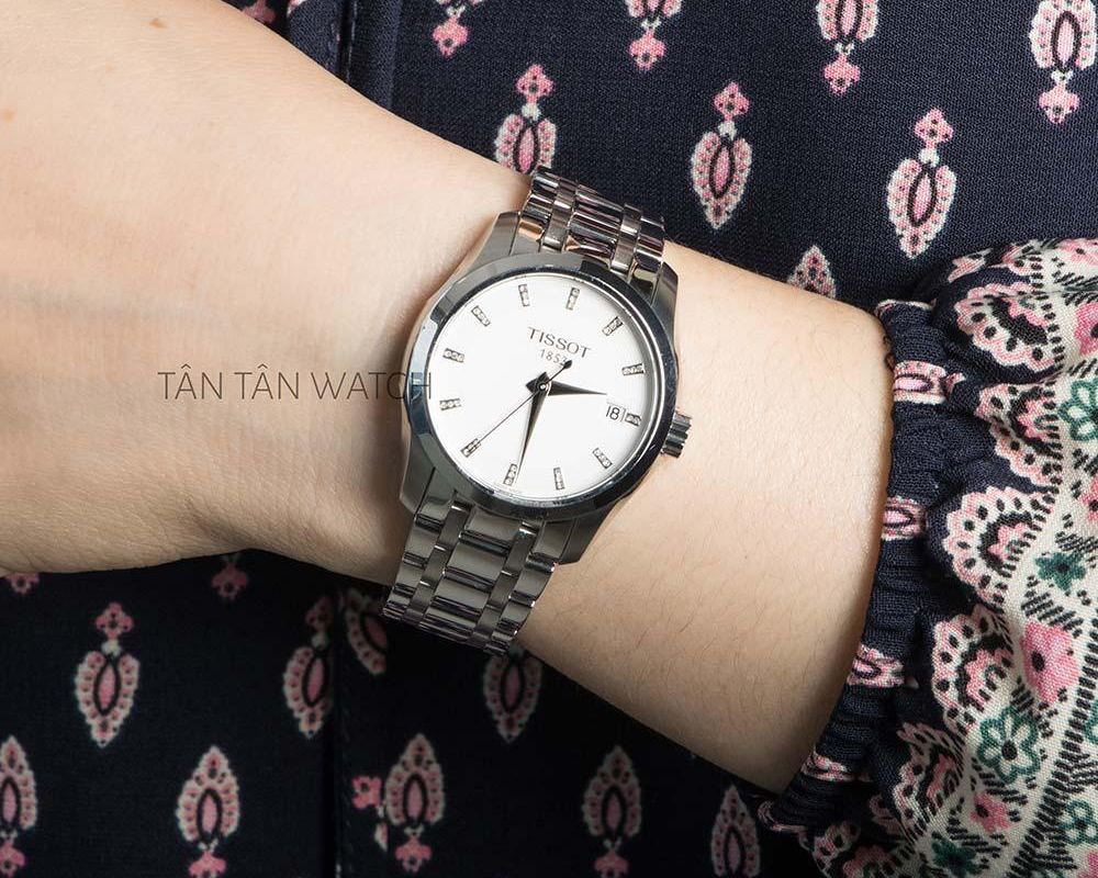 1. Tissot T035.210.11.016.00 - Phong cách thiết kế tối giản cùng vẻ đẹp sang trọng và thanh lịch từ kim cương cao cấp
