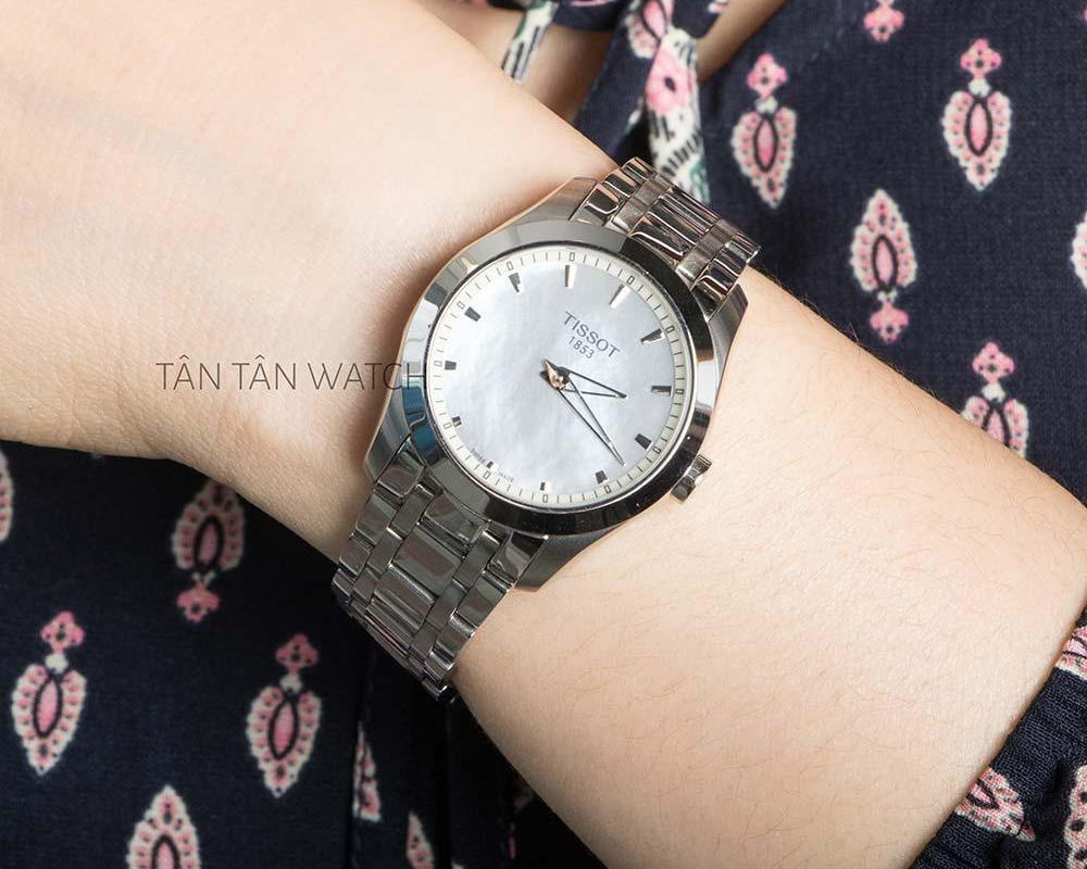 Không chỉ mang ý nghĩa lịch sử với những bước tiến vượt bật trong việc ứng dụng công nghệ hiện đại vào chế tác bộ máy thời gian, Tissot còn gây tiếng vang khi cho ra đời hàng loạt dòng sản phẩm dẫn đầu xu hướng thời trang, đặc biệt là dòng đồng hồ dành cho phái nữ. Tissot T035.246.11.111.00 của bộ sưu tập Couturier Secret Date Lady, một trong mẫu đồng hồ tiêu biểu chinh phục các nàng dù là khó tính nhất bằng vẻ ngoài cao cấp tinh tế và quyến rũ, mặt số xà cừ cổ điển, bộ vỏ tông bạc sang trọng không kén tay, bộ máy Quartz dễ sử dụng.