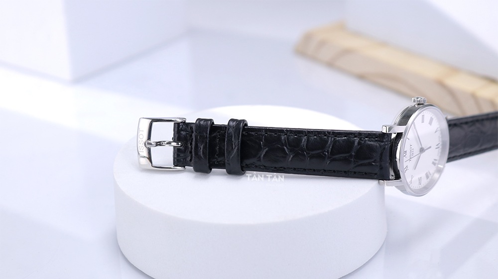 Tiếng tăm lẫy lừng nên việc trang bị bộ dây da chính hãng cho chính các sản phẩm của mình là điều rất cần thiết và Tissot T109.210.16.033.00 cũng không phải trường hợp ngoại lệ. Tissot T109.210.16.033.00 khoác lên mình một bộ dây đeo bằng da thuộc đen bóng dập vân cá sấu cực kỳ sang trọng, đồng điệu với tổng thể thiết kế của bộ vỏ và mặt số mang đến nét đẹp lịch lãm, không hề bị lỗi thời. Nhờ vào điểm đặc biệt của loại da thuộc này mà khi đeo lên cổ tay nữ giới nó để lại một vẻ đẹp sang trọng, quý phái đến lạ lùng, có thể kết hợp với nhiều trang phục khác nhau.