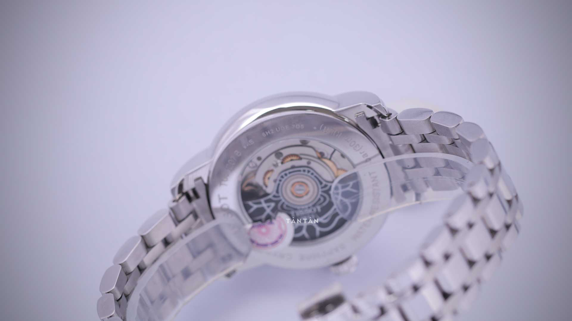 Tissot T050.207.11.117.05 có đường kính vỏ 35mm, độ dày chỉ 9.8mm, mỏng nhẹ và phù hợp với mọi cổ tay của các nàng. Đồng hồ có độ kháng nước cơ bản WR30 (tương đương áp suất ở độ sâu 30m nước), giúp các quý cô thoải mái rửa tay, đi mưa nhỏ.